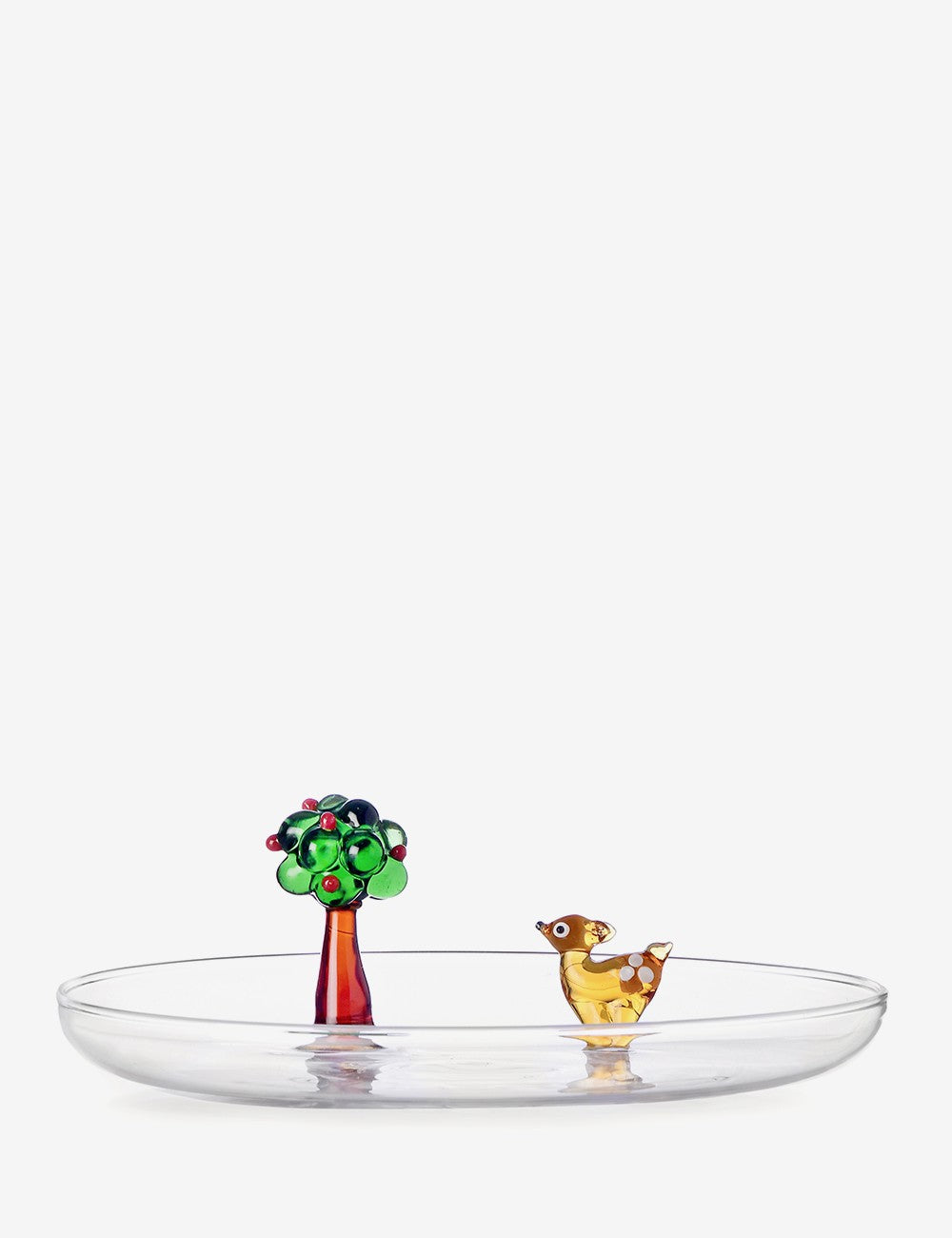 Each piece is handcrafted, mixing transparent glass with vibrant colorful figures, creating useful pieces that at first glance are small works of art.