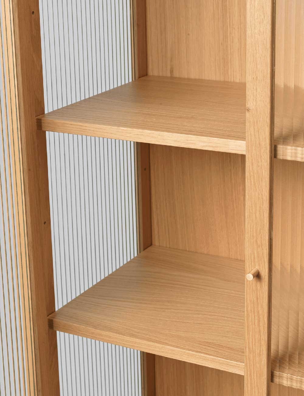 - Material : FSC™ certified solid oak, Oak veneer. Reeded glass, Brass