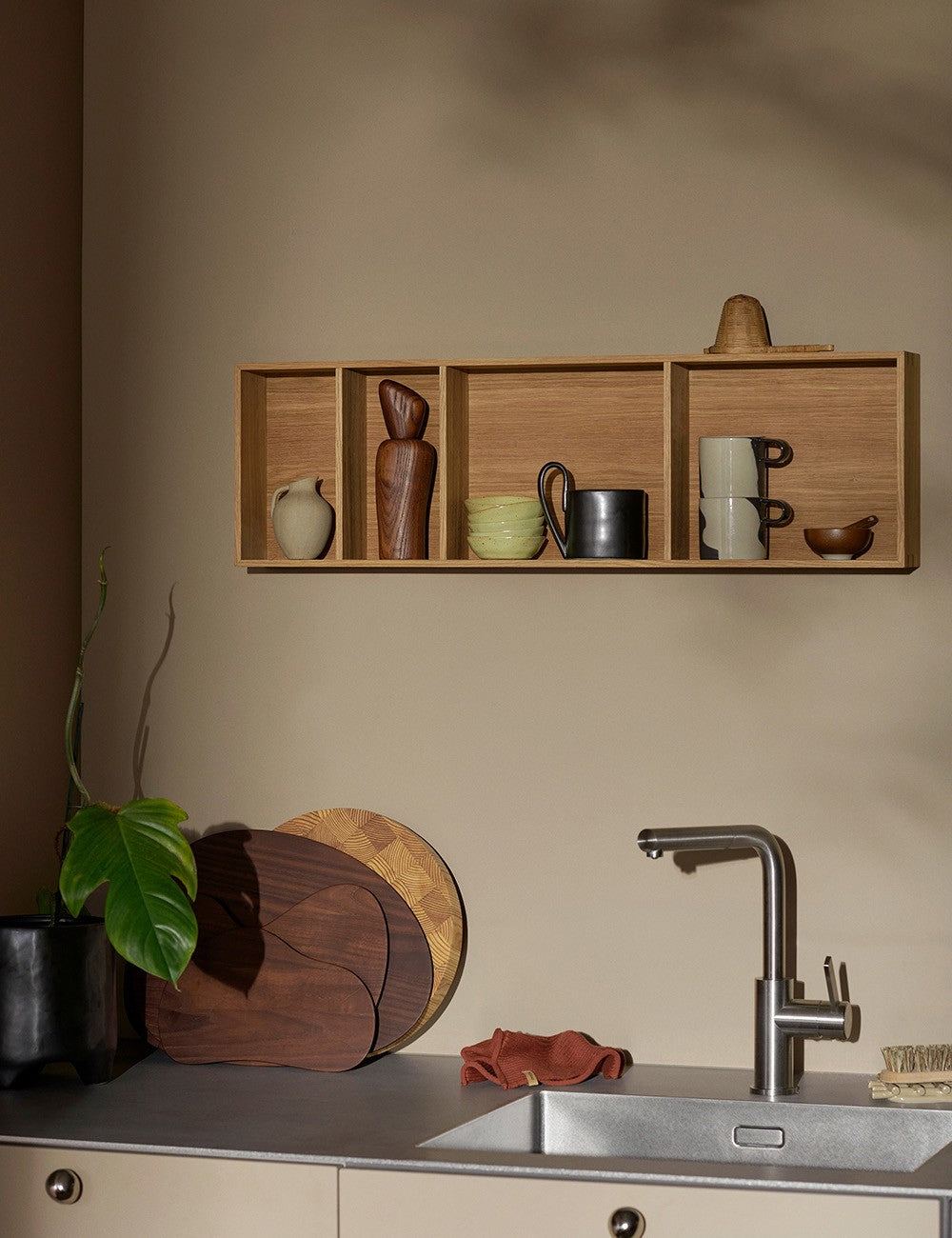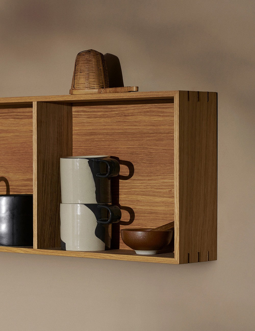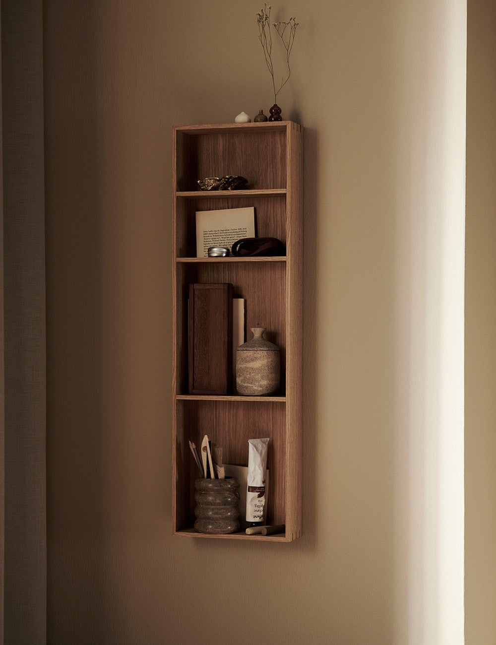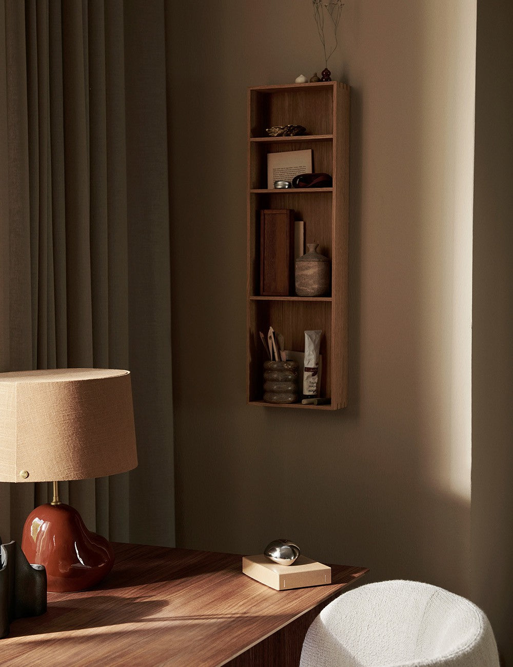 The Ferm Living Bon shelf marries traditional craftsmanship with contemporary design, resulting in a shelf with minimalist and functional lines.