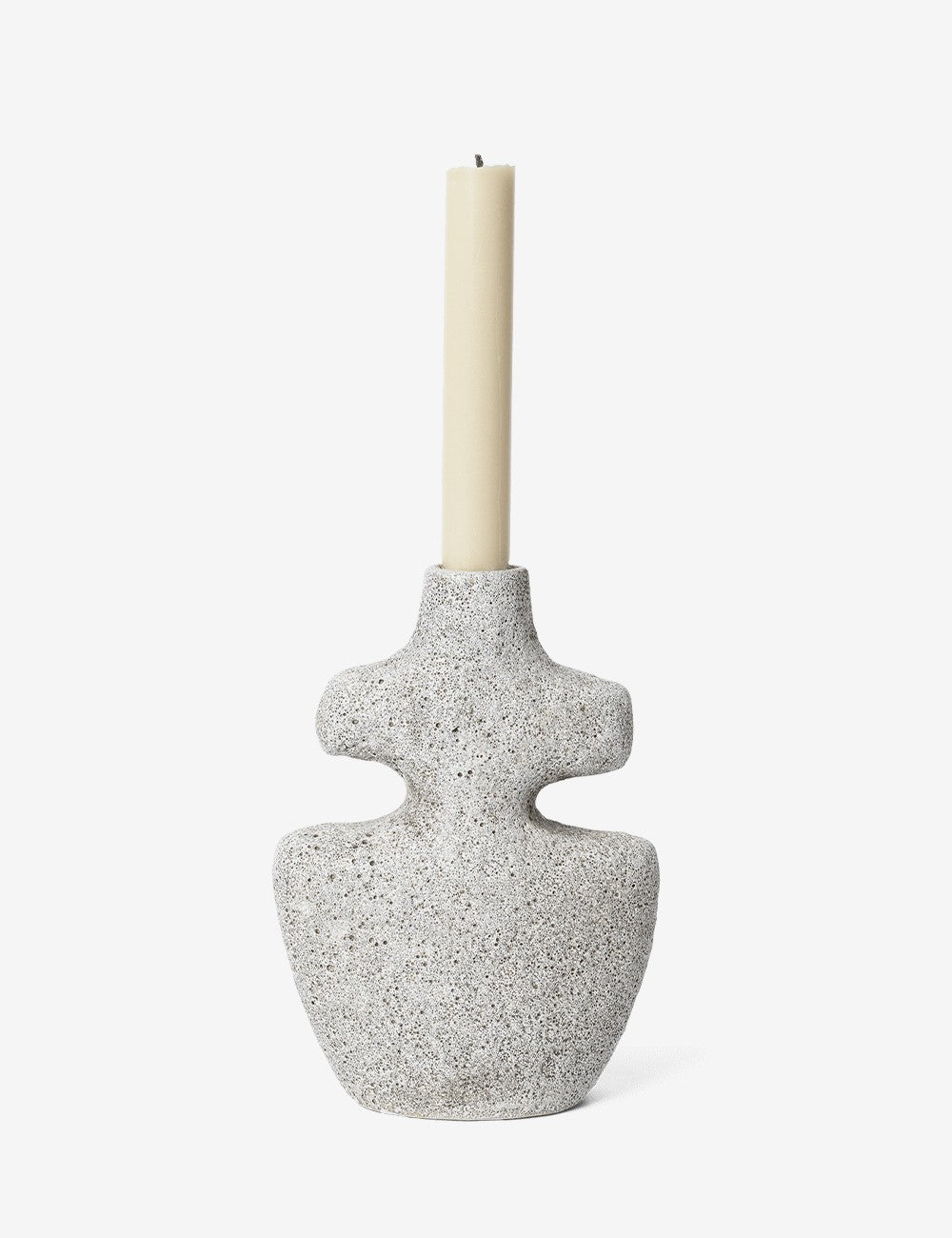 Yara, by ferm LIVING, is made up of a series of candleholders and vases with abstract shapes.