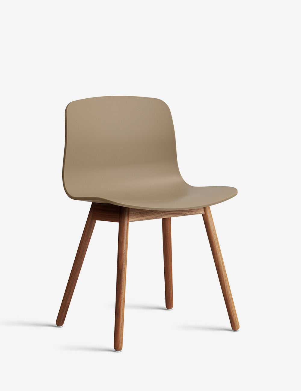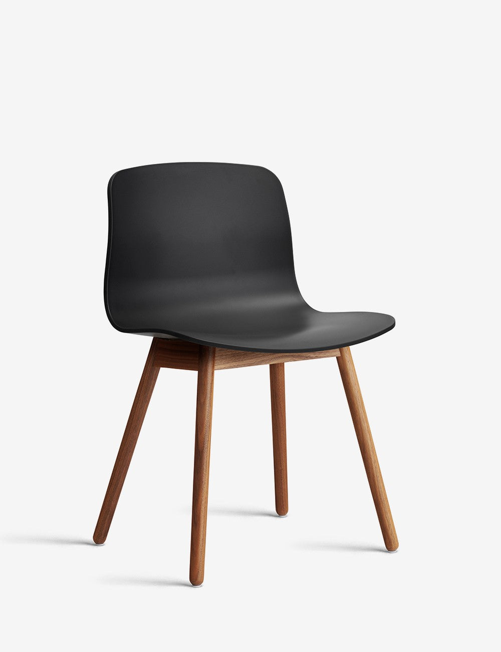 The chair's streamlined seat is made from post-consumer recycled polypropylene, and its wooden frame is made from oak or walnut and finished with an environmentally friendly water-based lacquer.