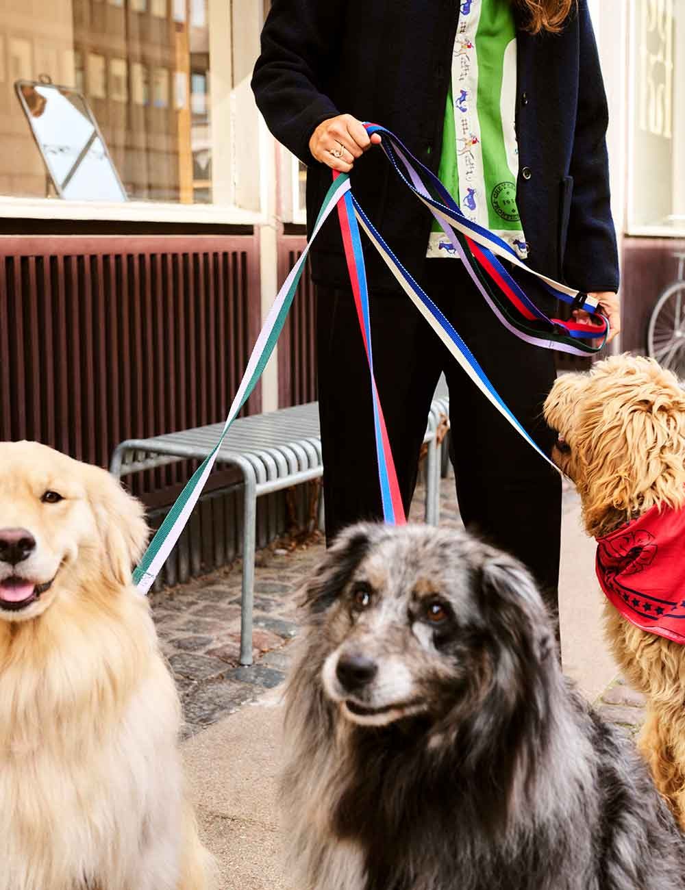 The leash is available in different striped designs to match the collars from the same collection.