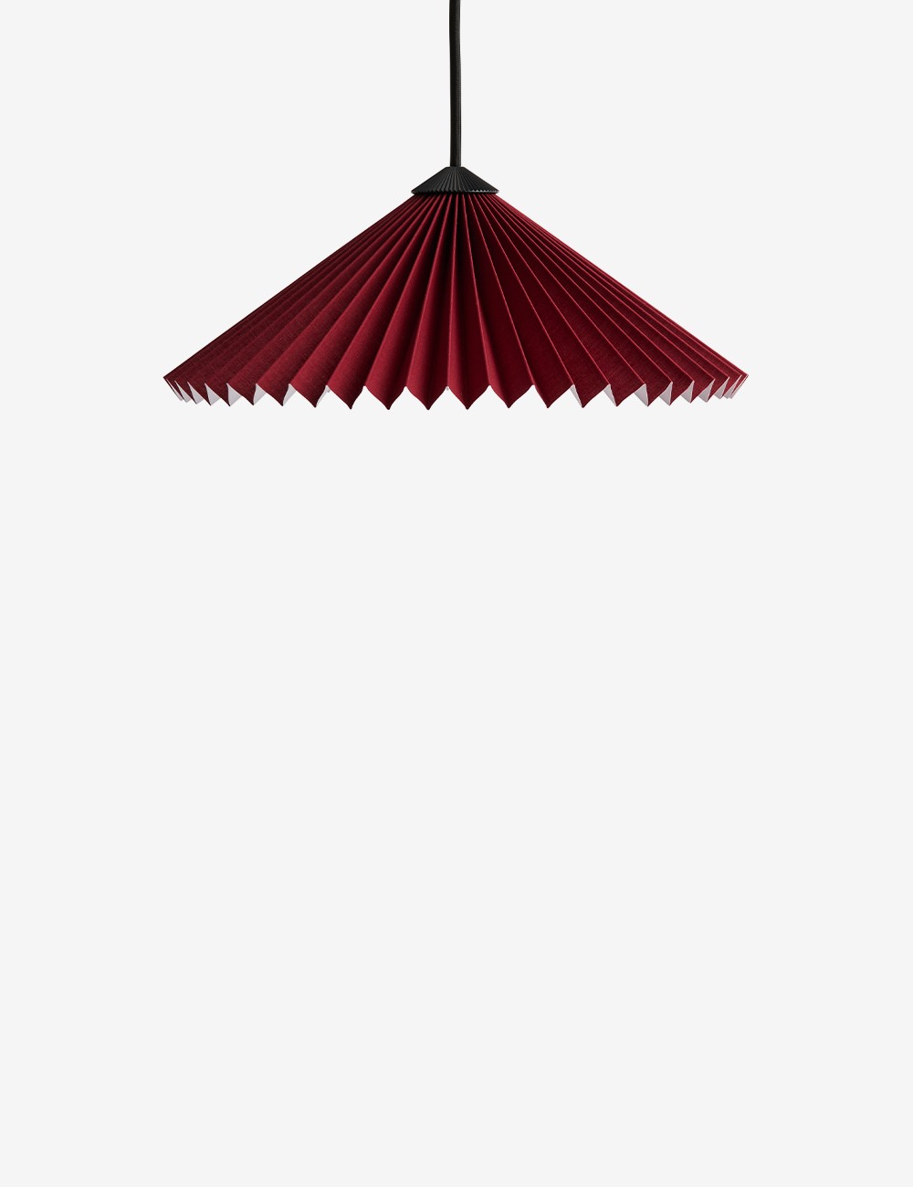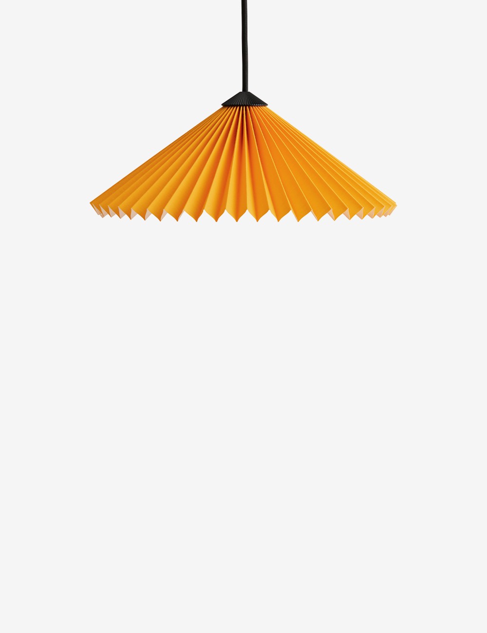 Matin is a ceiling lamp with oriental influences, designed by Inga Sempé for HAY and made with a pleated PVC lampshade finished in cotton, resulting in a lamp with a sophisticated design and a lot of personality.