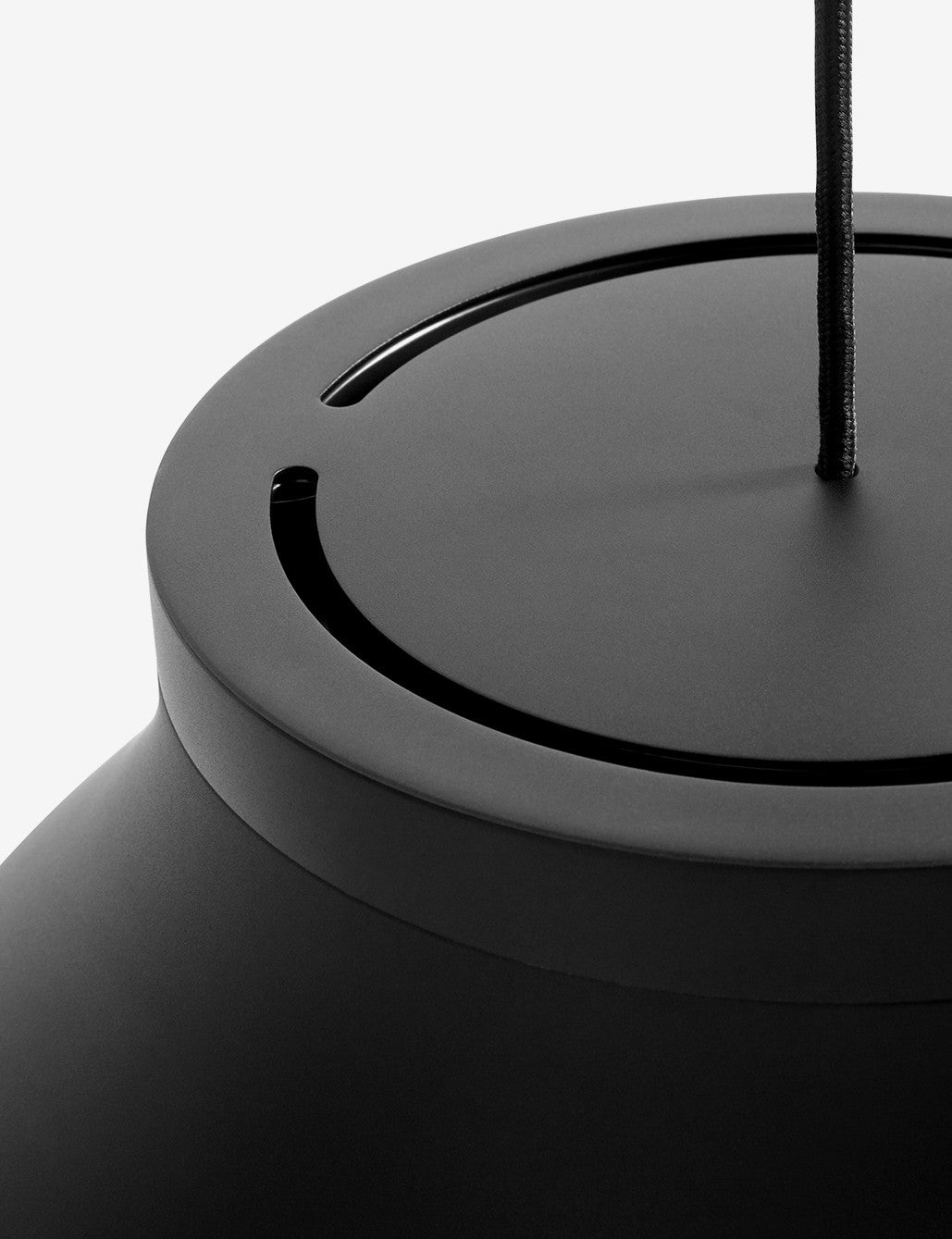 The truncated cone-shaped design, and its metallic finishes, make it perfect for culinary spaces, although it can also be used in any room of the house to create clean environments of conceptual style. Each lamp is accompanied by a 4 meter black cors, and a black metallic rosette.