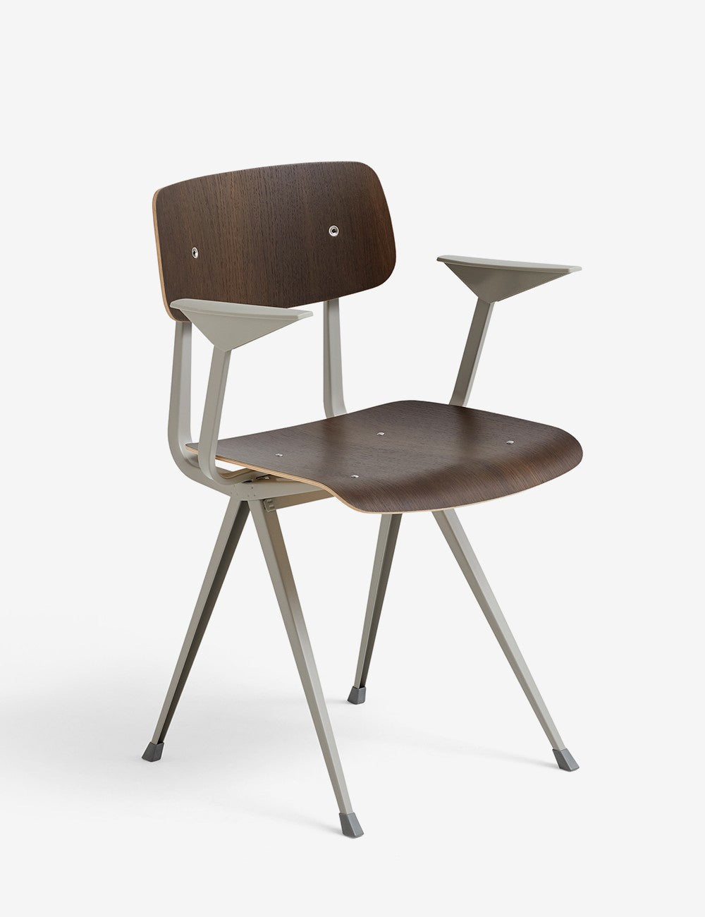 The Result chair has a fine steel sheet base with oak seat and backrest, which retains maximum flexibility, lightness and strength, while maintaining the minimalist design. Originally a popular chair in schools in the 50s, Result's clean aesthetics and durability mean that it can be used in many public and private contexts. Available in a variety of wood finishes and base colors that can be combined with the Pyramid table.