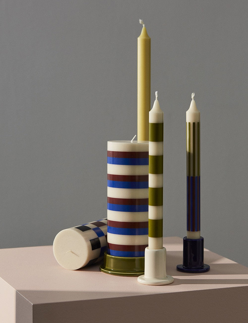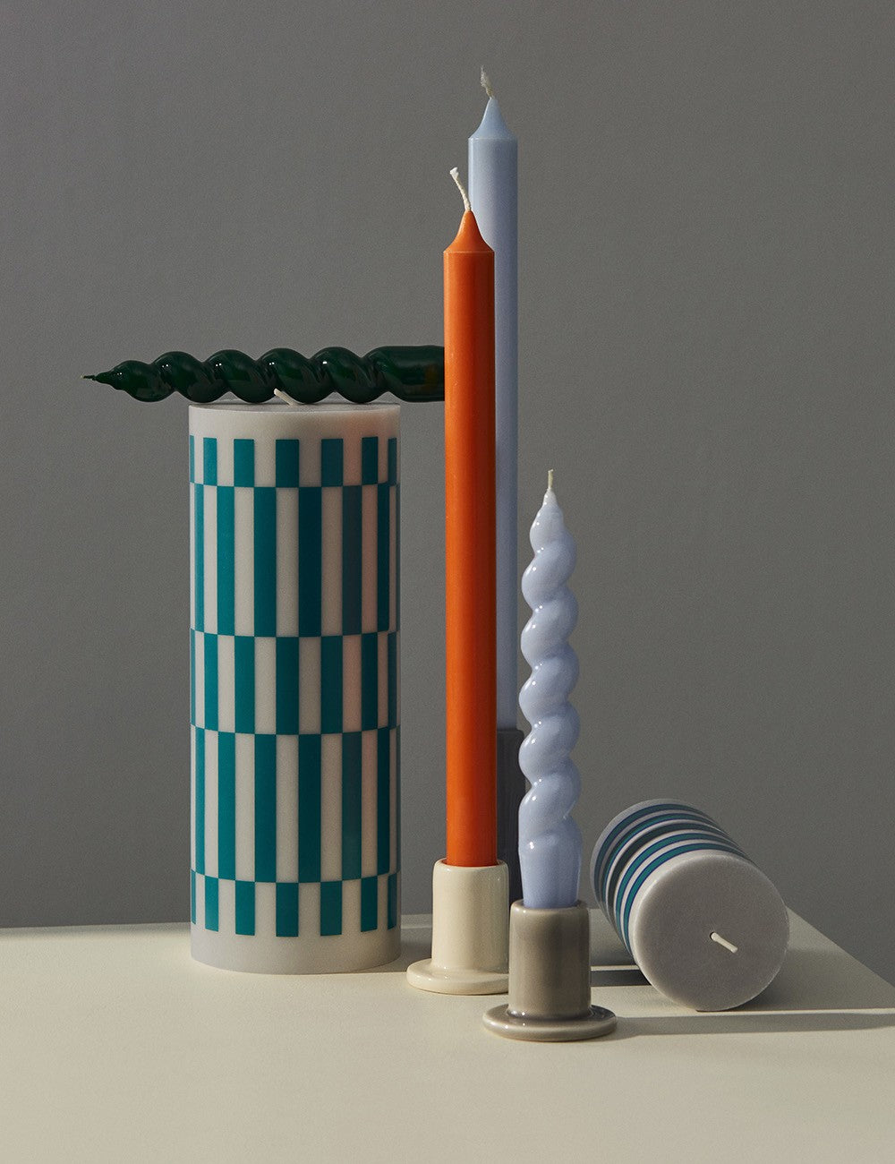 Originally designed to be used with the wide variety of HAY candles, the candle holder has a circular base that catches any wax that may drip when in use.