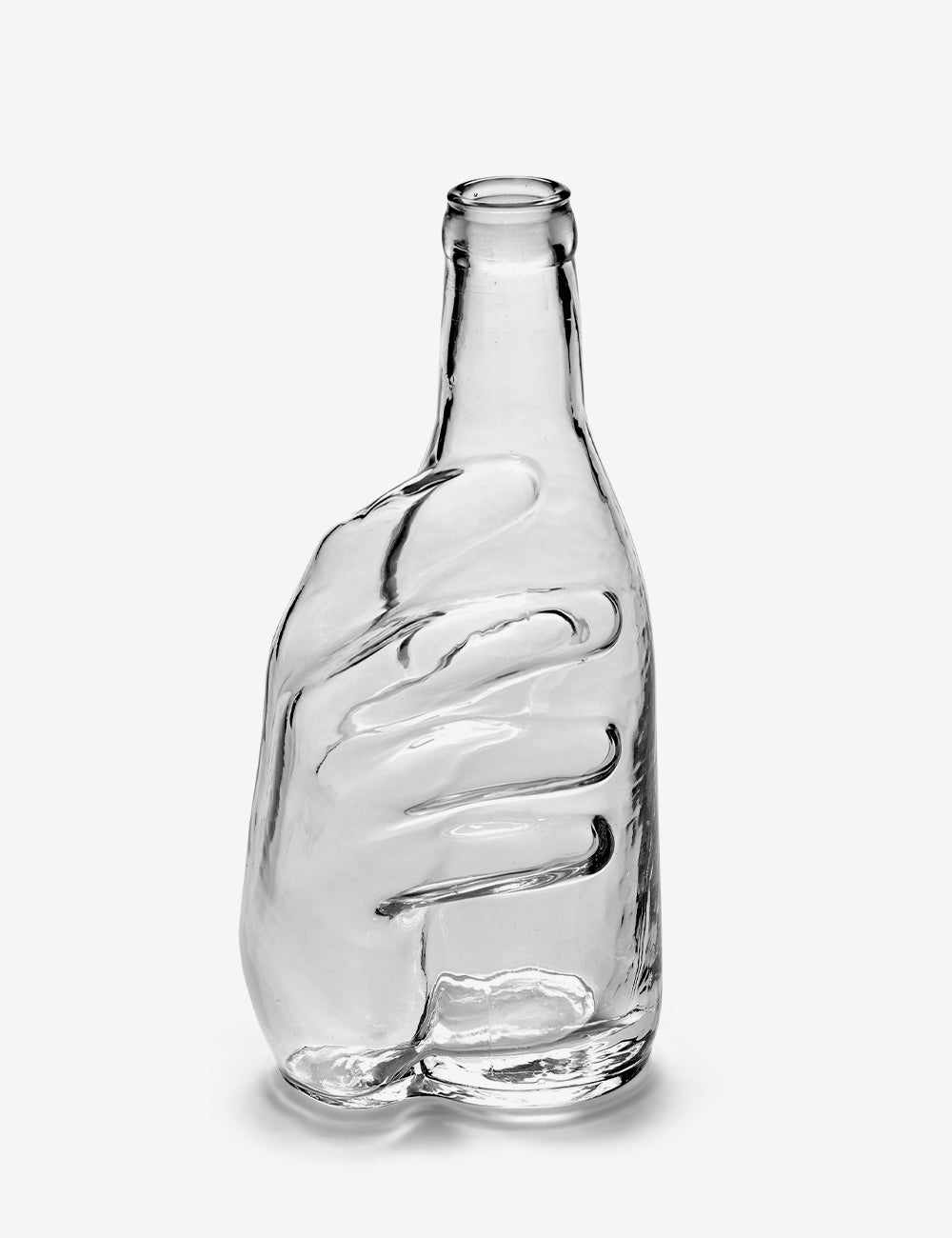 The Edward jug, designed by Wouters & Hendrix, brings a surreal and humorous touch to the table. The hand fused with the body of the jug makes this piece a unique conversation starter, available in clear or green glass. Perfect for both sophisticated banquets and simple dinners, its name pays homage to the surrealist poet Edward James. Edward is part of the dreamlike Les Objets Mouleversants collection, created by renowned jewelry designers Wouters & Hendrix. The collection is also available in a gift box.