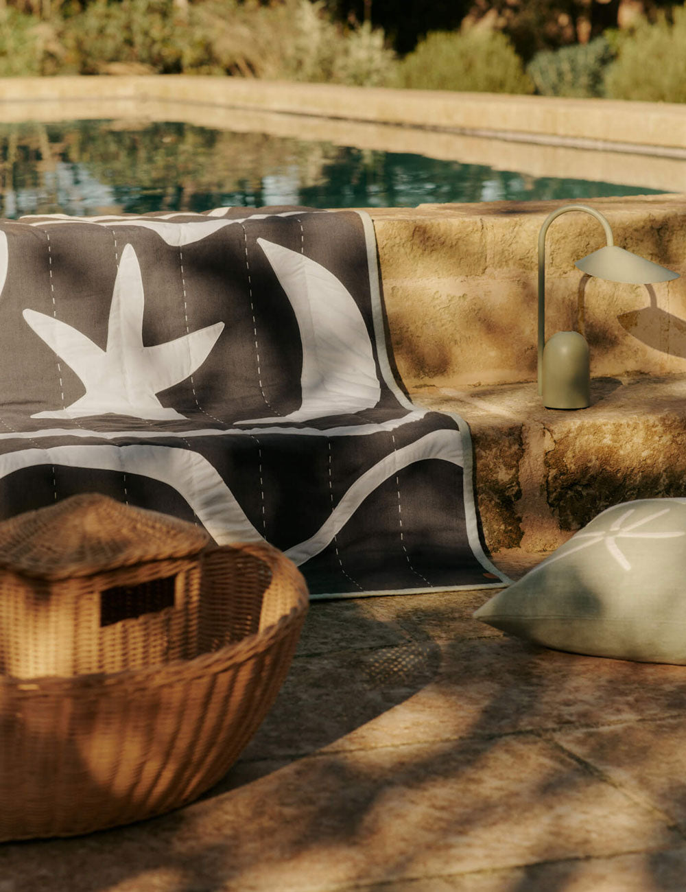 The Kove Appliqué Quilted Blanket is inspired by the natural beauty of the Mediterranean coastline, evoking the elemental essence of the ocean through its design and textures.