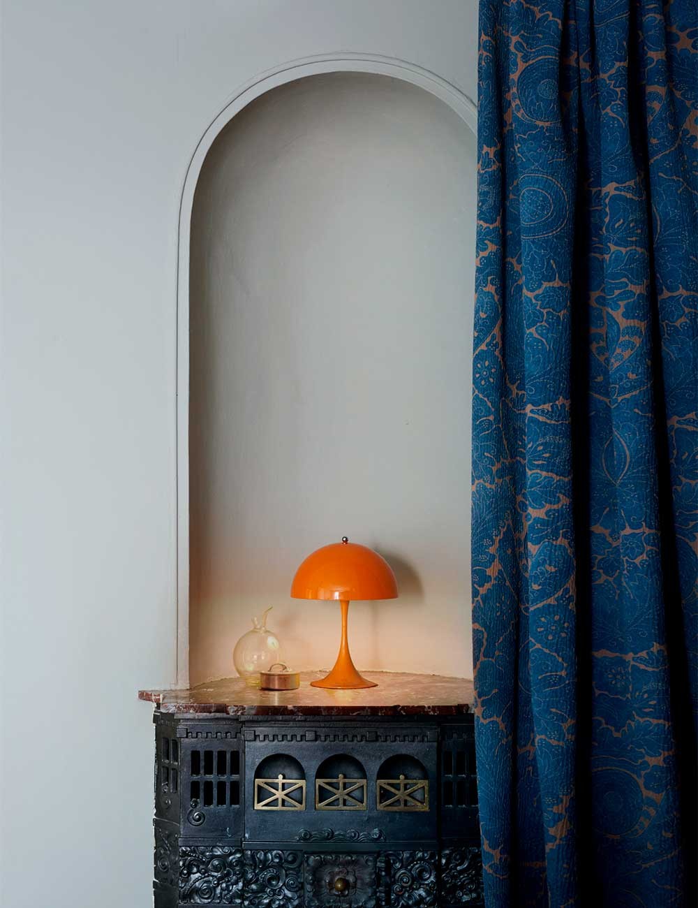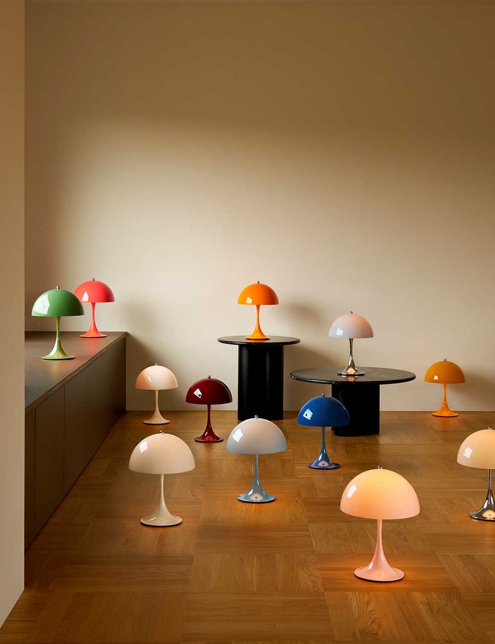 Panthella es un icono que busca que tanto el pie como la pantalla actúen como reflectores para crear una luz ambiental sin deslumbramientos. La versión portátil