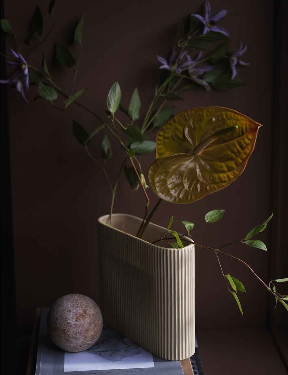 Thanks to its narrow shape and inner rim, Ridge allows flowers to be displayed in an innovative way: in a line, rather than in a bouquet.