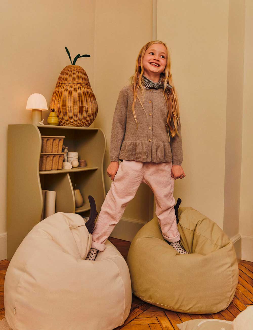 Made from organic cotton and filled with soft polystyrene beads, it offers a cosy corner for reading, resting or letting the imagination run wild.