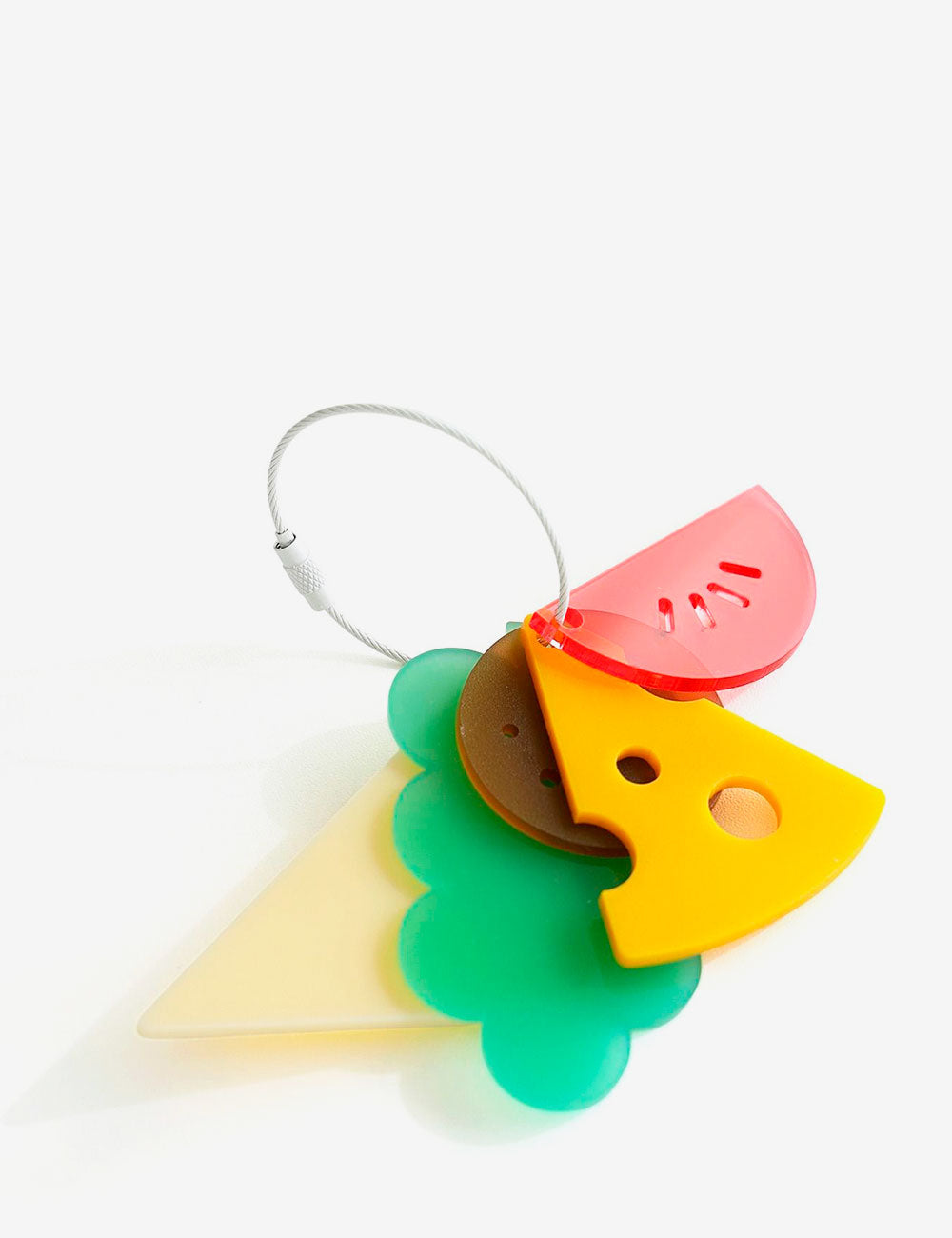 Each thick piece of acrylic is die-cut and dyed to represent a different ingredient, and when joined together, they create a cheerful, graphic and very playful accessory to carry on your keys, rucksack or pencil case.