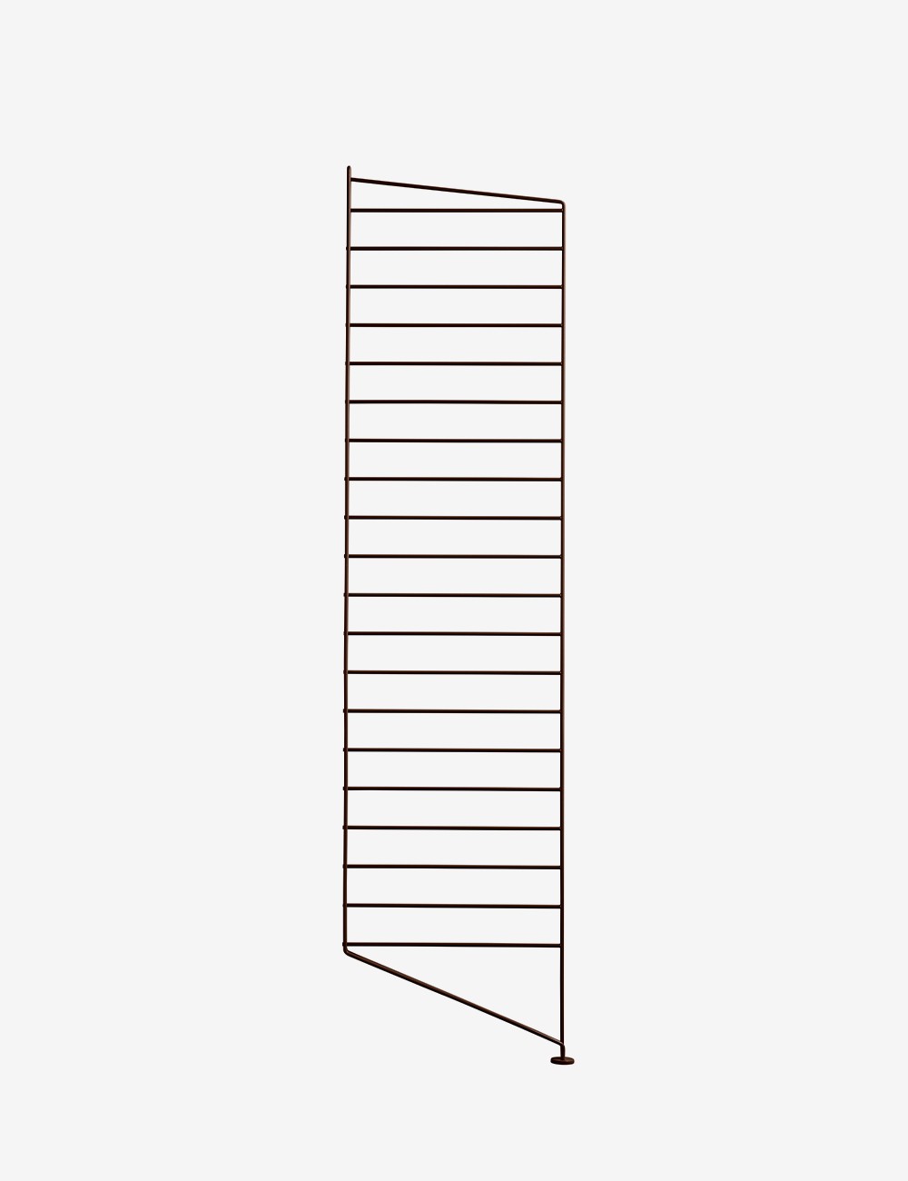 The foot of the panel rests on the floor, which stabilizes the shelf and gives it a light appearance.