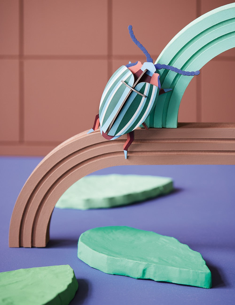 Rainbow Leaf Beetle by Studio Roof consists of 11 vibrant color pieces that are easily assembled creating different depths.