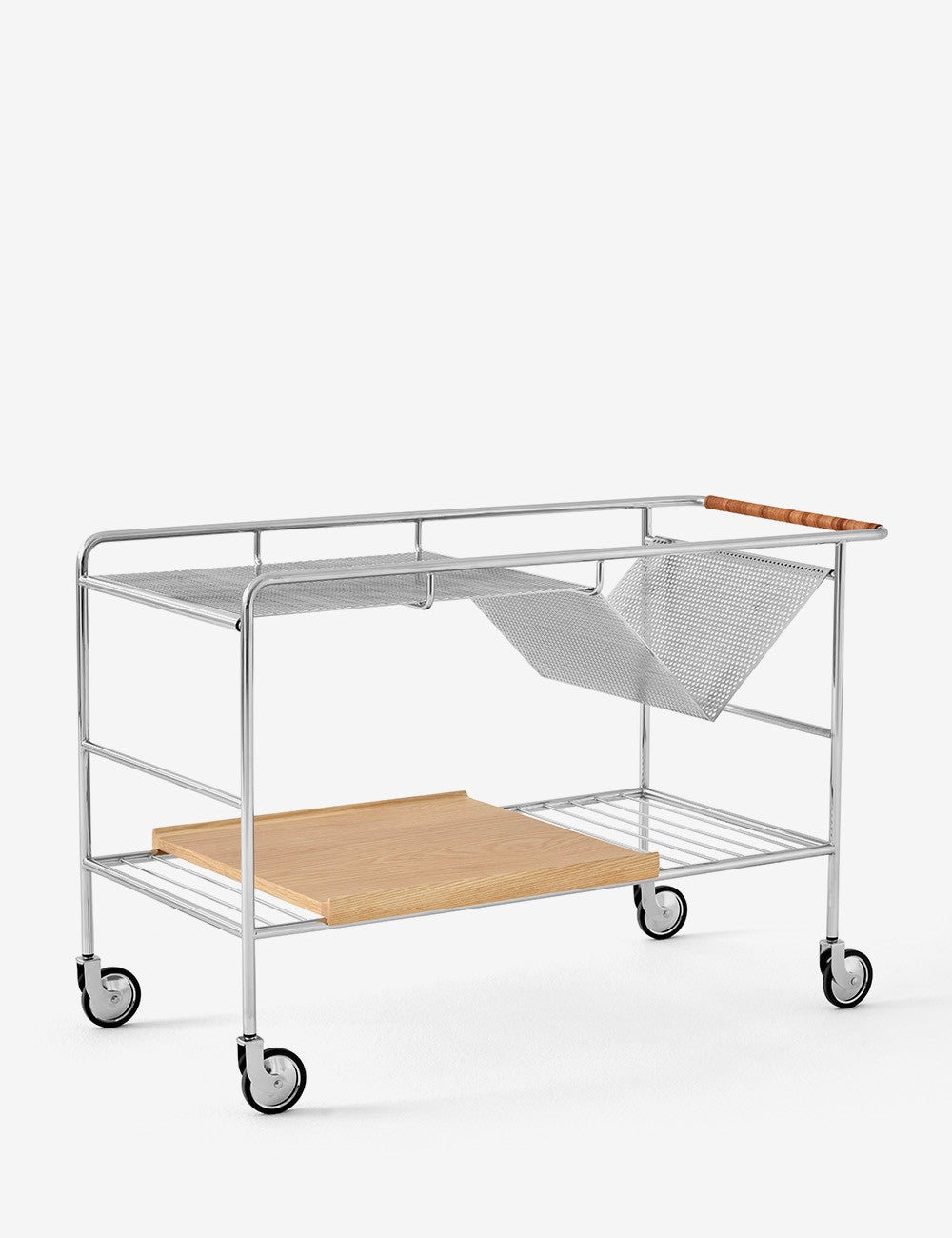 The result is Alima. An elegant cart with a distinctive V-shaped design integrated into its surface that allows easy storage of books and magazines.