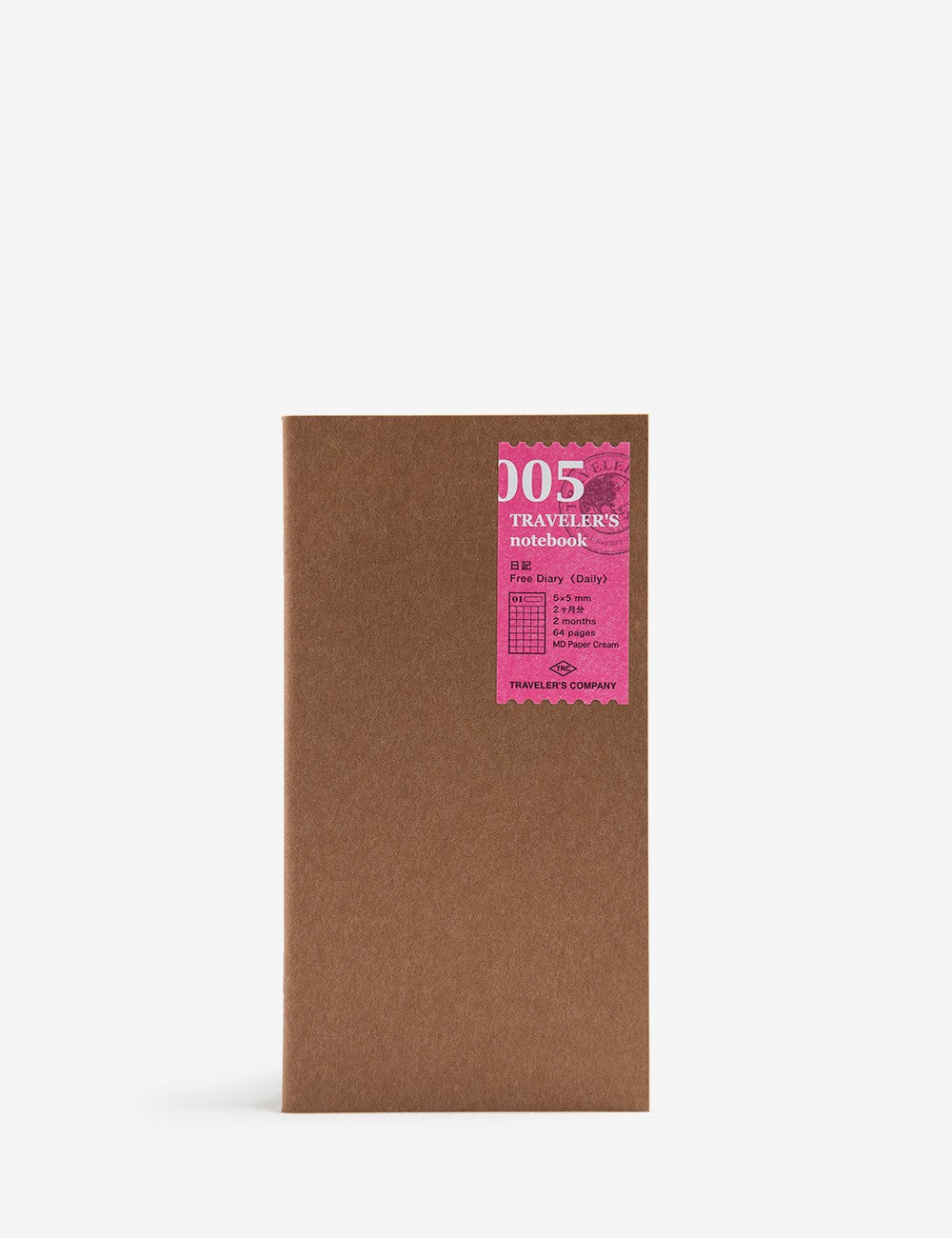 Refill 005 is made up of a stapled notebook with a hard Kraft paper cover and 64 cream gridded pages with a 5mm line spacing.