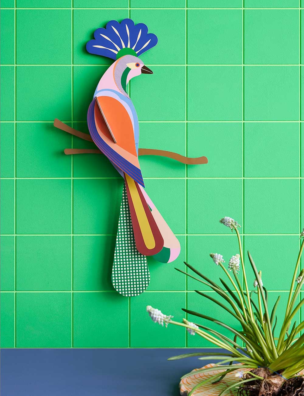 Paradise Bird Tinjil by Studio Roof consists of 6 vibrant color pieces that are easily assembled creating different depths.