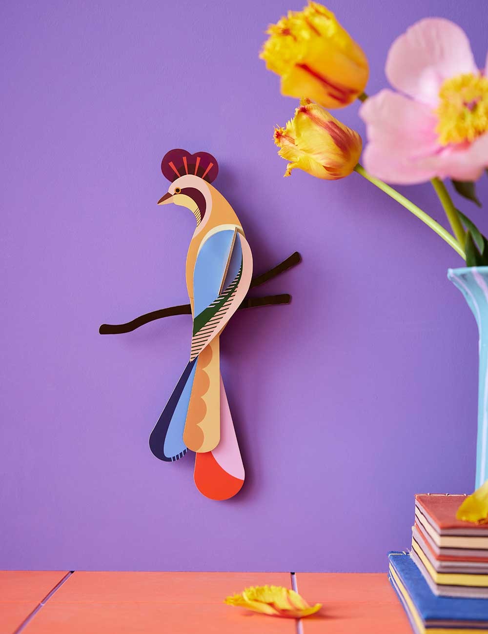 Paradise Bird Sunda by Studio Roof consists of 6 vibrant color pieces that are easily assembled creating different depths.
