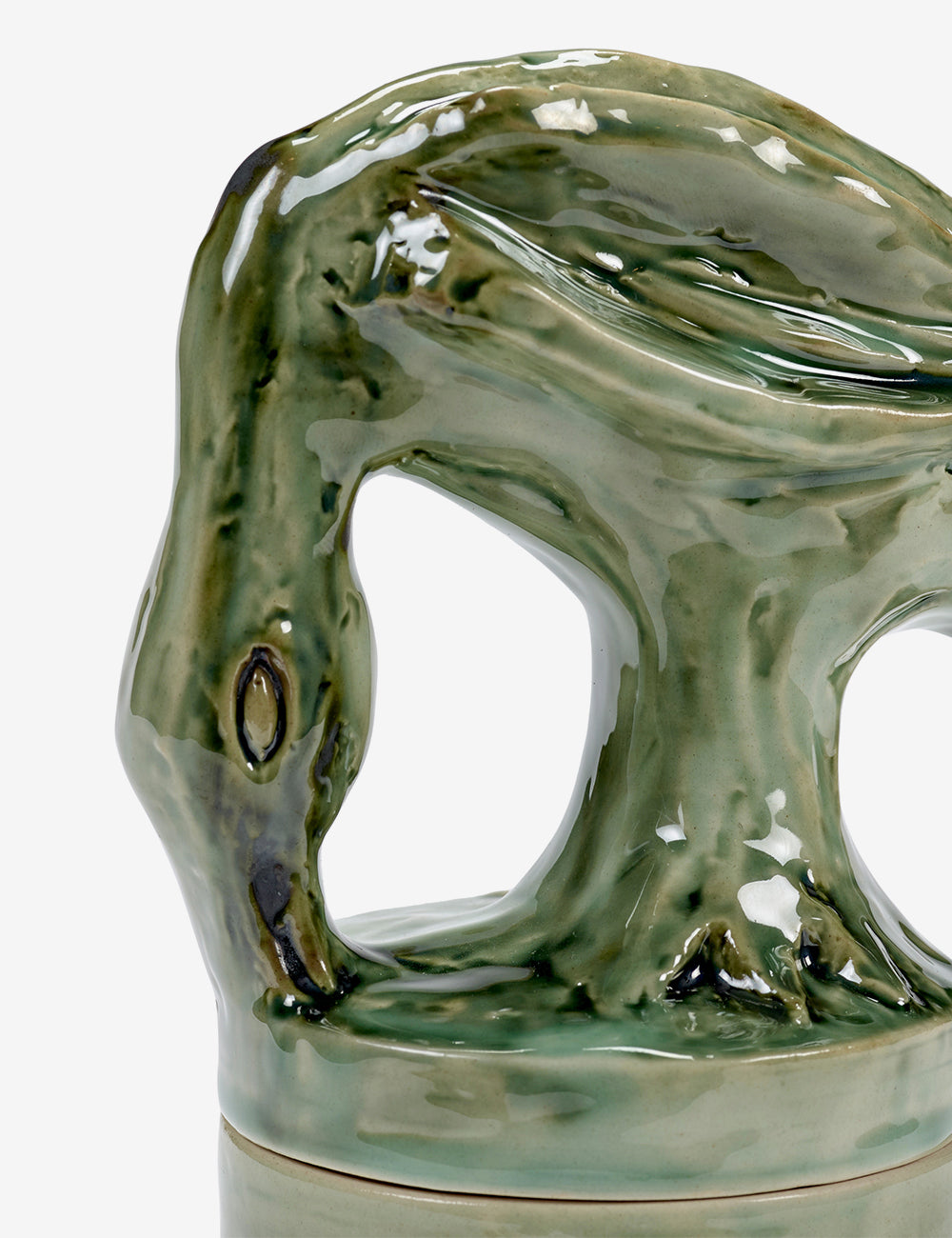 - Ceramic containers with lids, decorated with natural shapes and motifs.