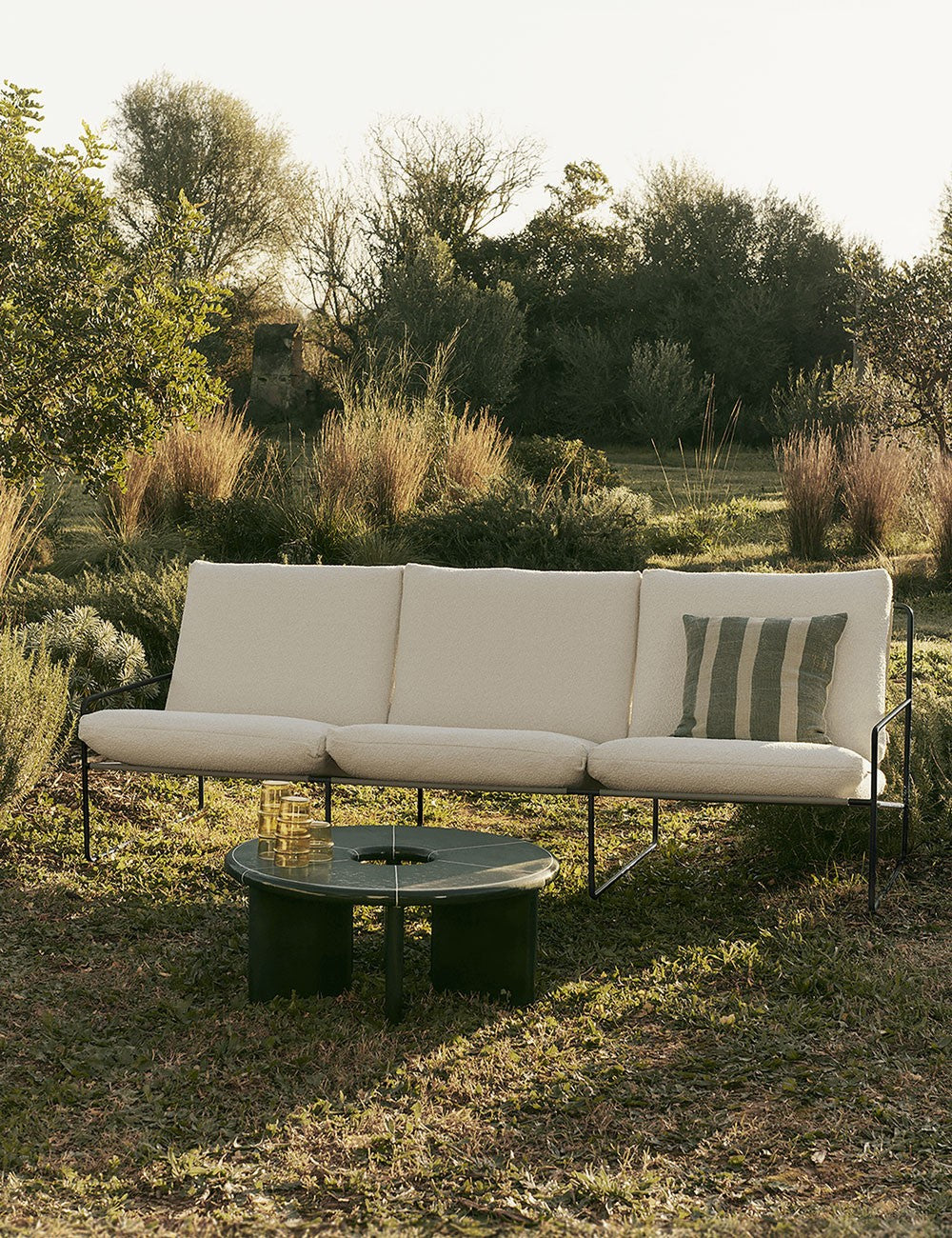 Fabriqué à partir de lin 100 % lavé, le coussin Oleo présente des marquages ​​dessinés à la main qui prennent vie grâce à un processus de sérigraphie complexe.