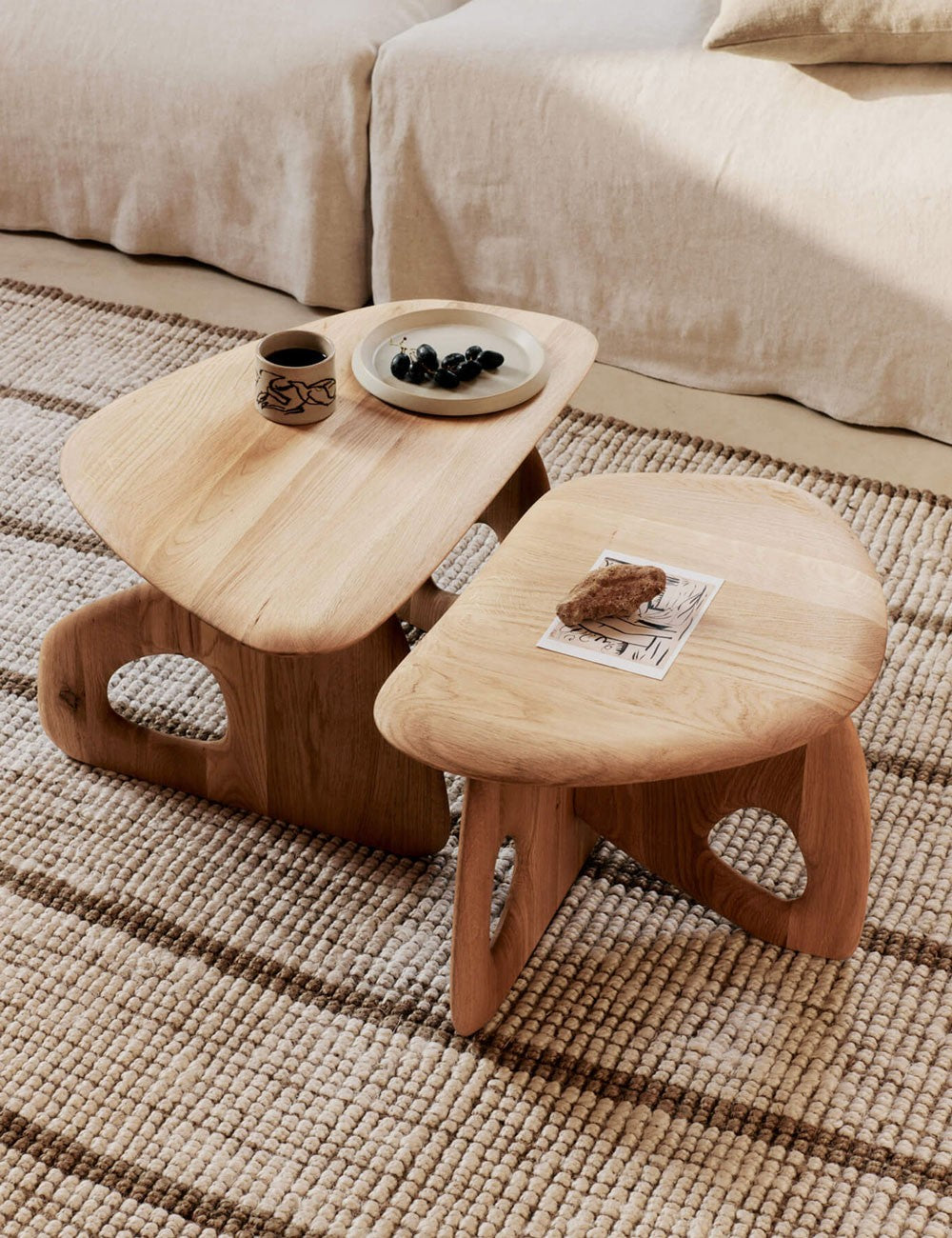 La table basse Oar allie élégance et design réfléchi, avec des courbes douces et fluides et un détail de découpe unique sur les pieds.