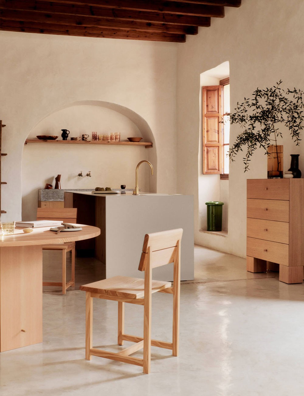 La collaboration Ferm Living x Utzon - Can Lis s'inspire de la maison familiale de l'architecte Jørn Utzon à Majorque, mêlant l'environnement naturel à des éléments de design qui reflètent sa philosophie unique.