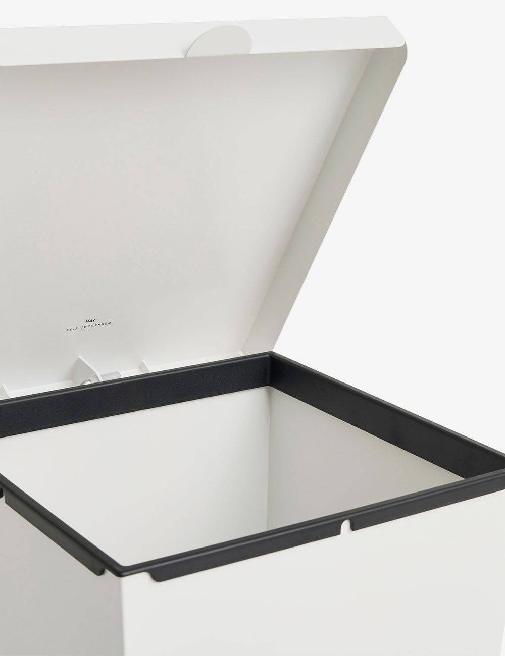 Conçu par Leif Jørgensen pour HAY, Loop Bin allie lignes épurées et praticité dans une poubelle rectangulaire en acier inoxydable.