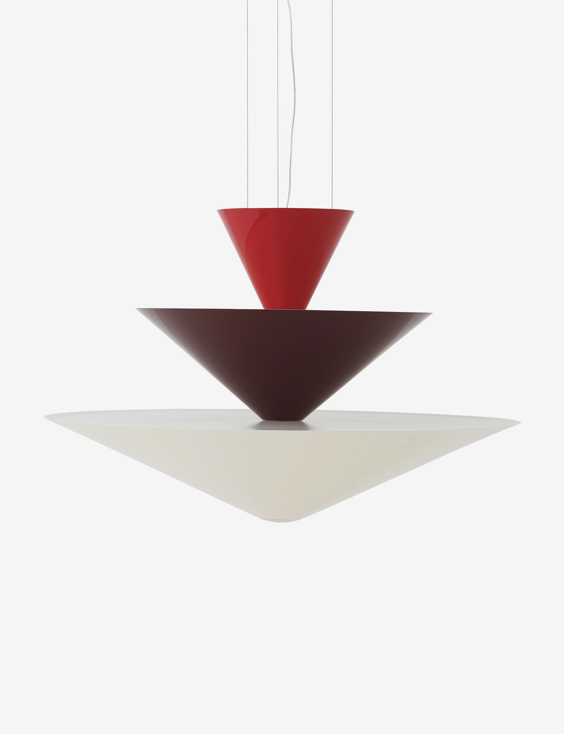 La lampe fonctionne comme un éclairage vers le haut qui émet doucement de la lumière à partir de deux niveaux dans son environnement, et comme un éclairage vers le bas, avec un trou à l'extrémité du plus grand cône qui dirige la lumière vers la surface en dessous.
