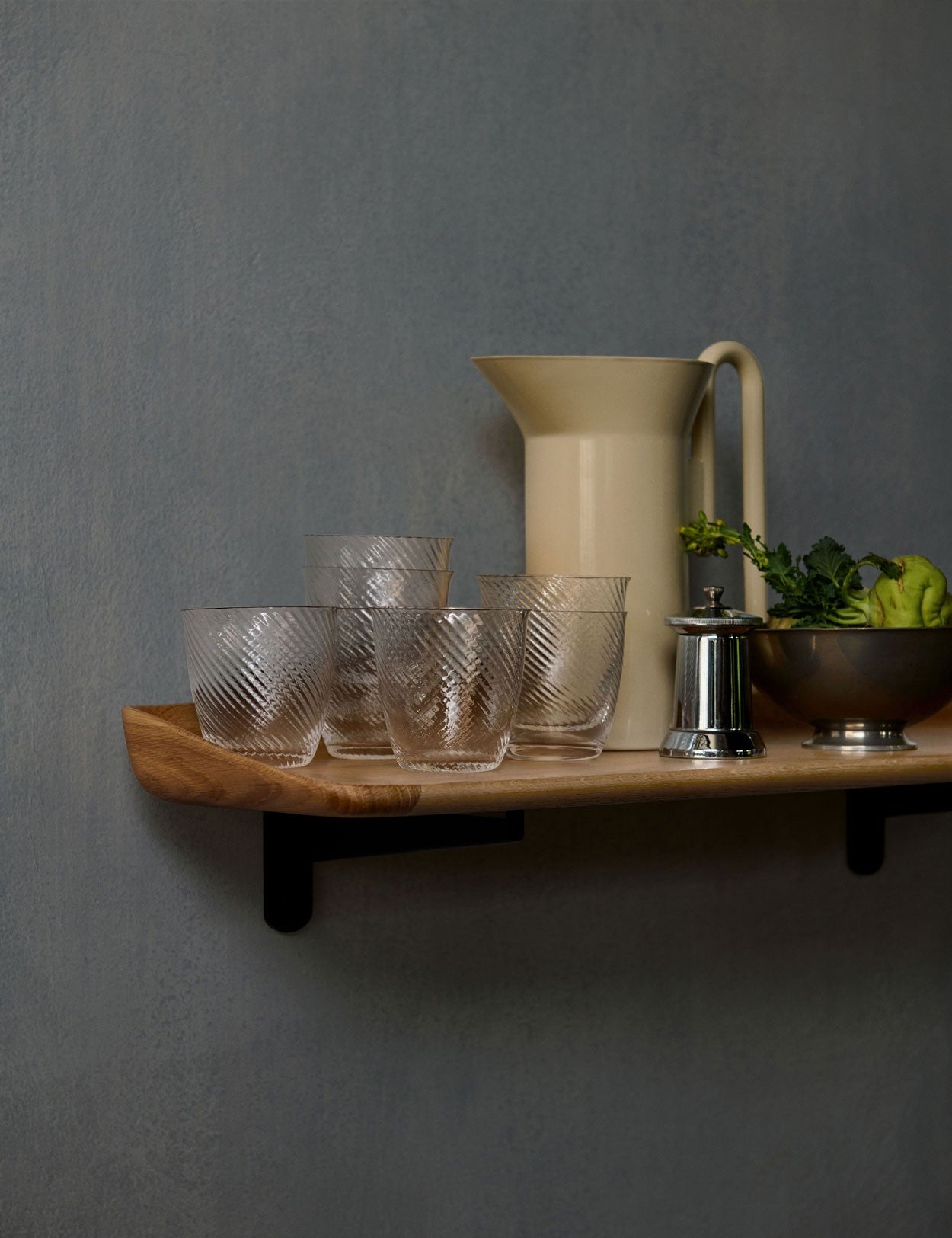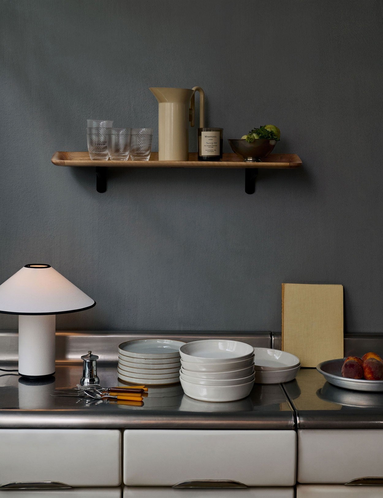 La forme organique de cette étagère, qui reflétait subtilement les courbes du jardin familial, s'inspire du travail présenté par Hvidt & Mølgaard à l'exposition de la guilde des ébénistes de Copenhague en 1951.