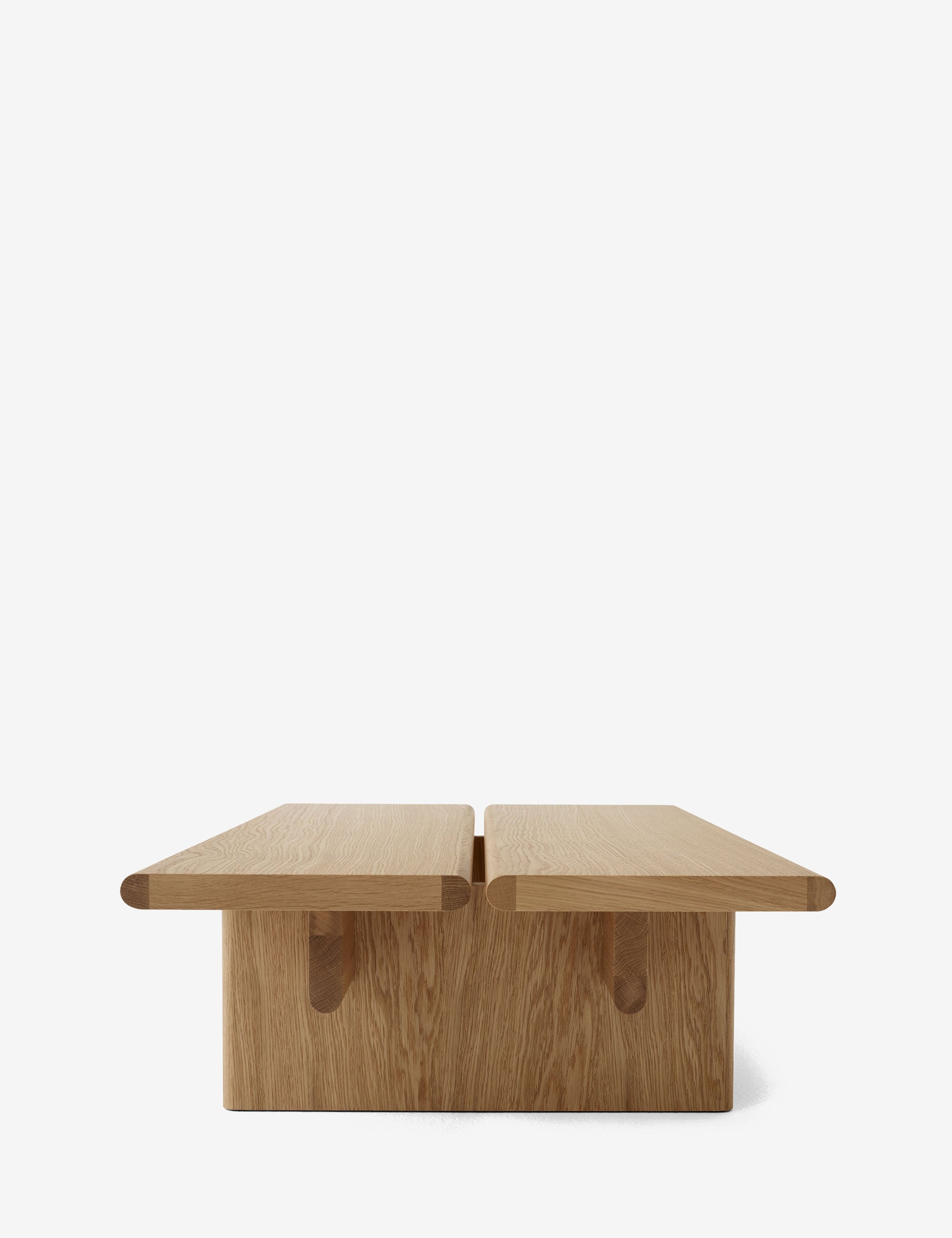 De profil bas, la table basse Ita offre suffisamment d'espace pour exposer des livres aux côtés d'objets précieux.