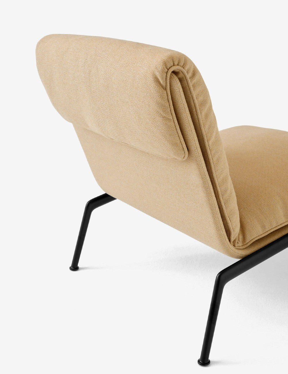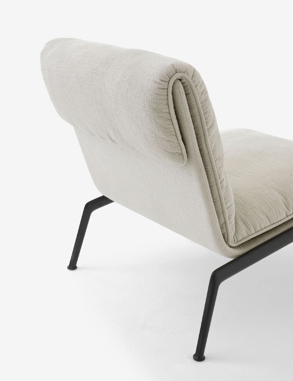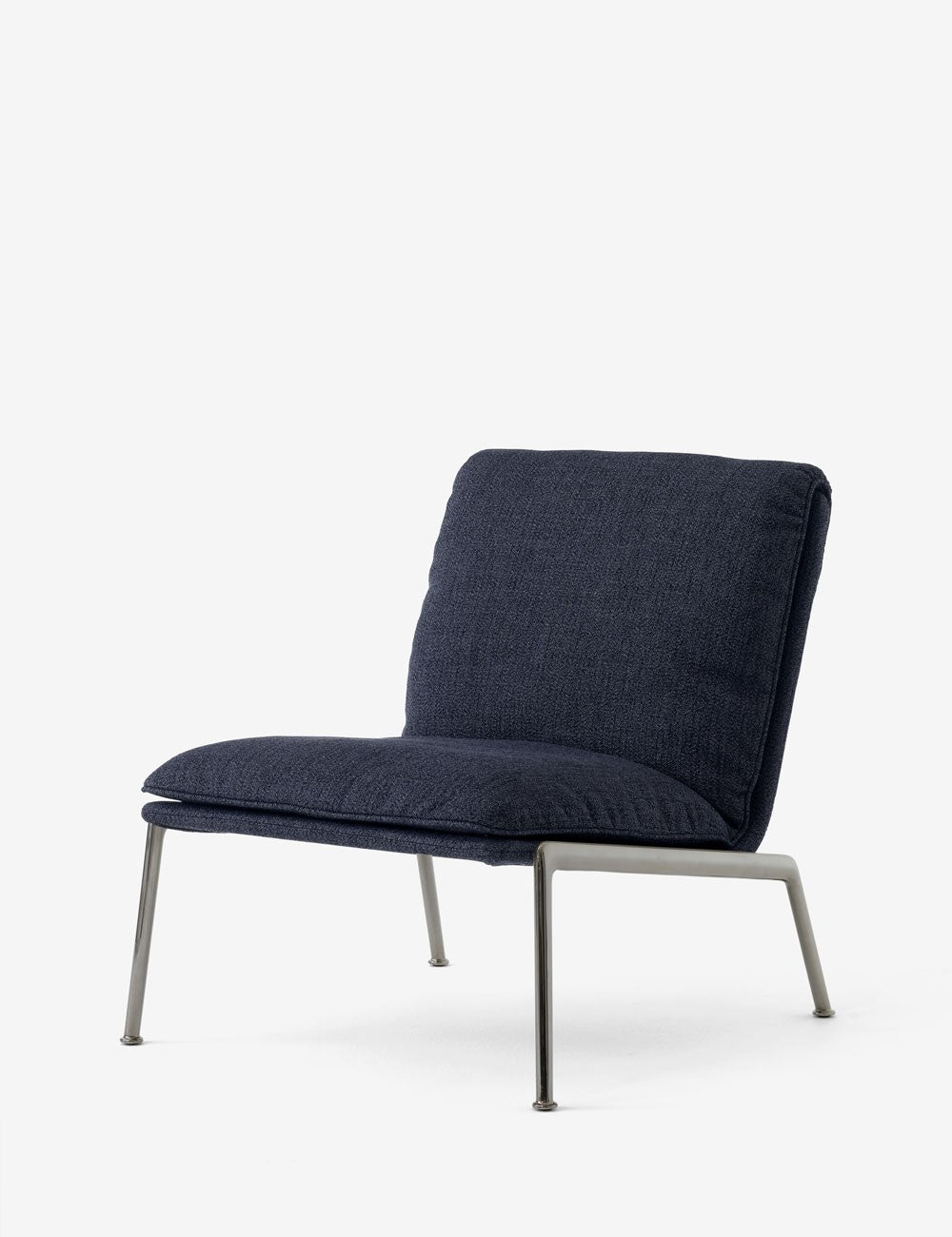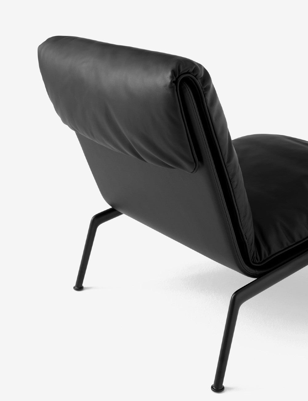 Composée de cinq modèles, la collection Muno comprend des fauteuils à dossier haut et bas, avec ou sans accoudoirs, ainsi que des poufs assortis. Le piètement en aluminium moulé de chaque modèle est disponible en chrome foncé ou avec un revêtement thermolaqué noir chaleureux.