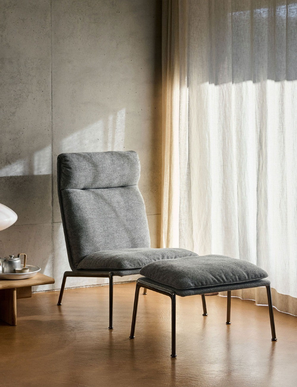 Unissant la collection à une identité visuelle forte, Muno présente des coussins matelassés et d'élégants pieds en aluminium moulé.