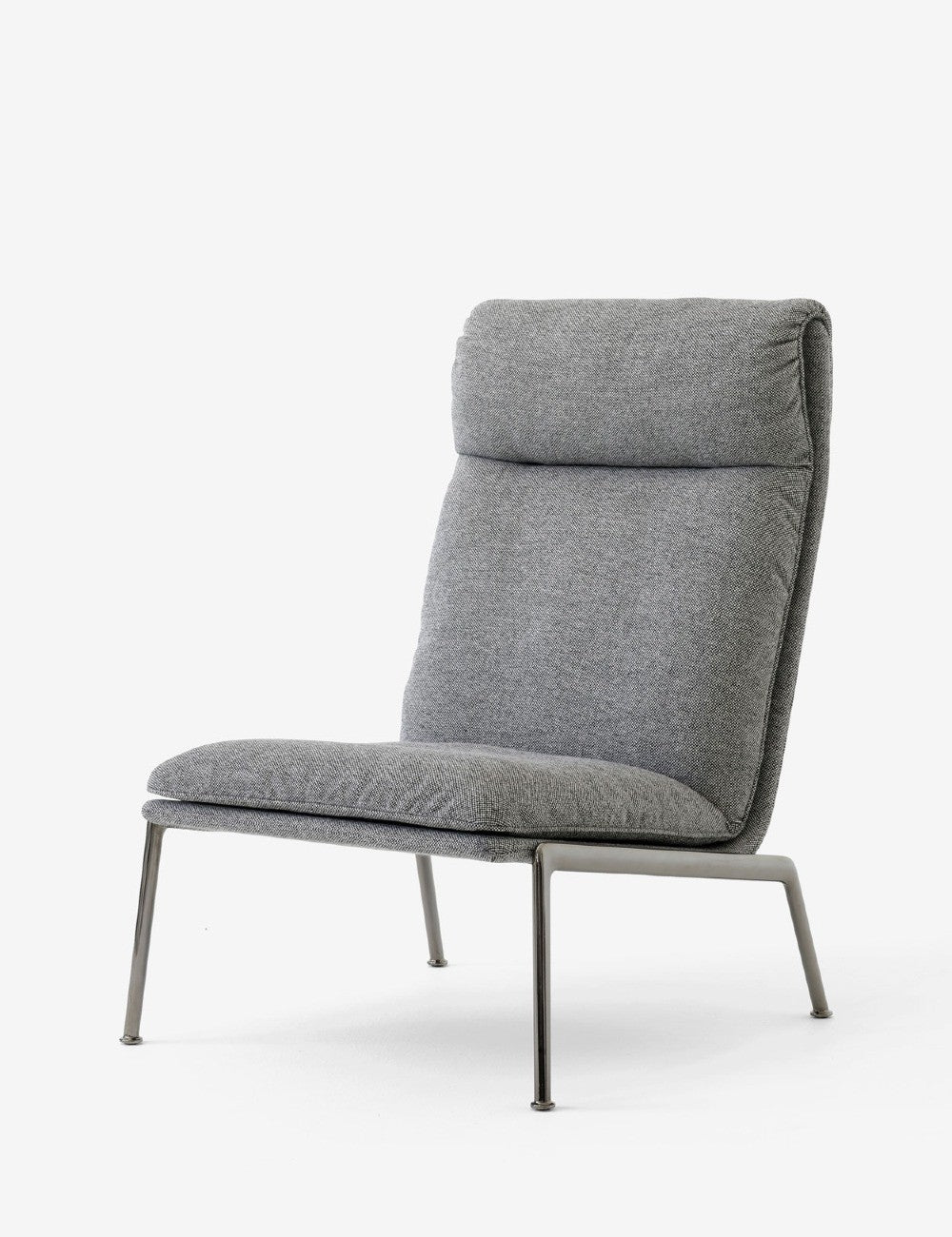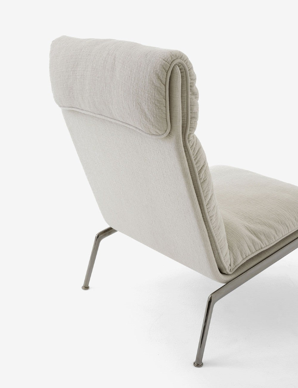 Composée de cinq modèles, la collection Muno comprend des fauteuils à dossier haut et bas, avec ou sans accoudoirs, et des poufs assortis. Le piètement en aluminium moulé de chaque modèle est disponible en chrome foncé ou avec un revêtement thermolaqué noir chaleureux.