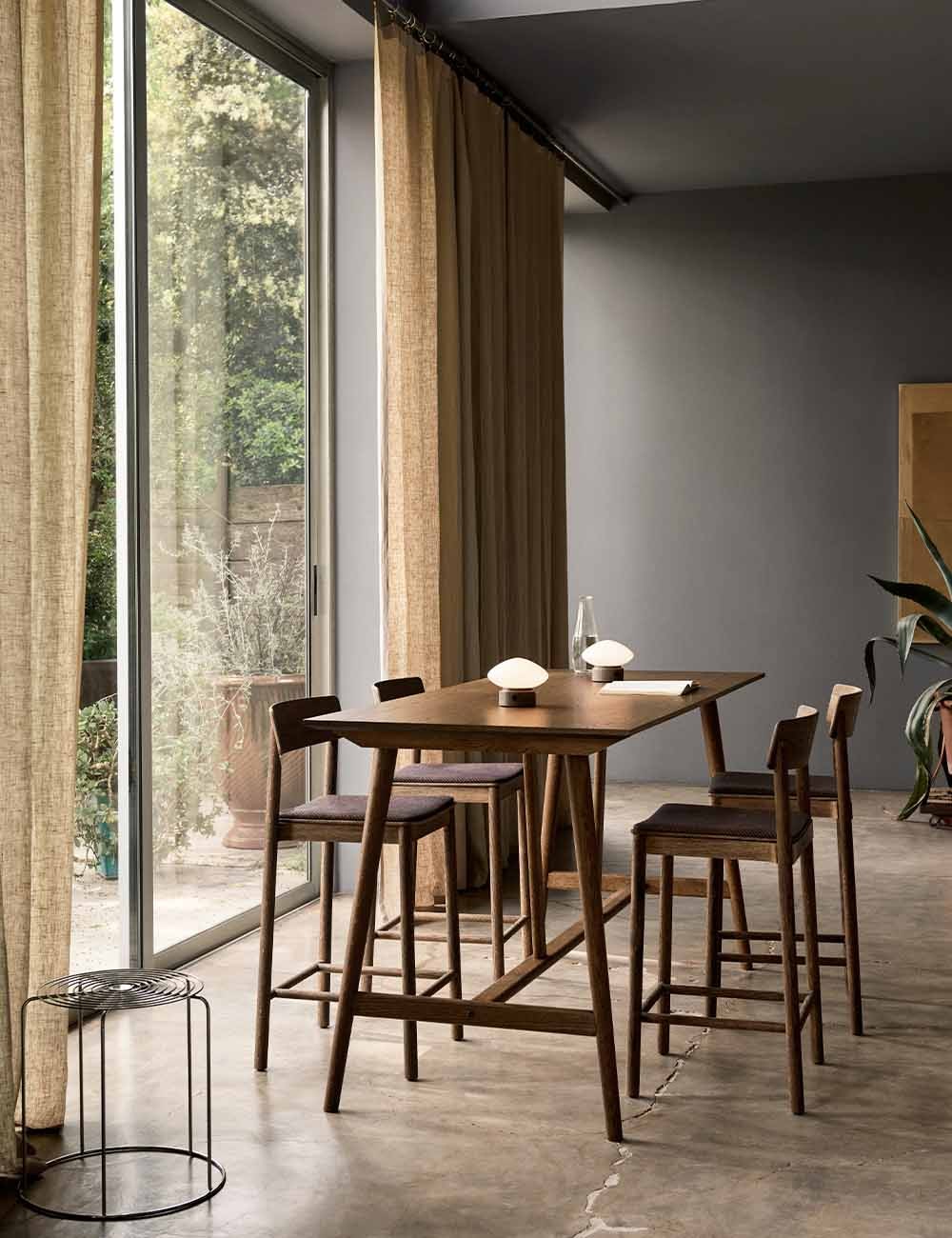 Suivant les principes essentiels de la famille In Between, la table Bar se distingue par son design artisanal et son respect des matériaux organiques.