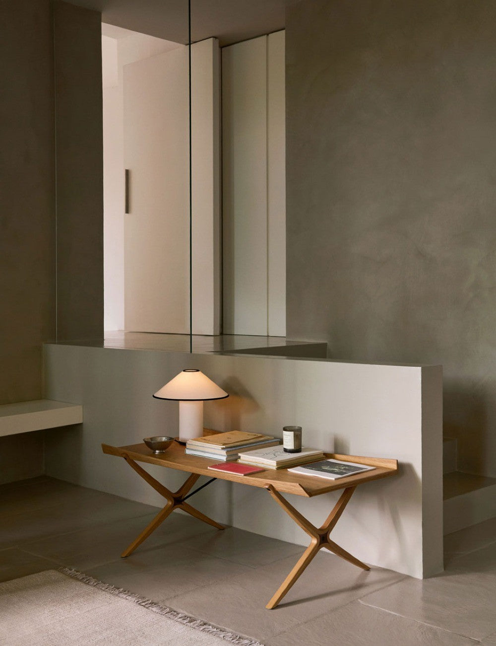 Récupérée dans les archives familiales, la table tire son design unique des anciennes chaises pliantes égyptiennes.