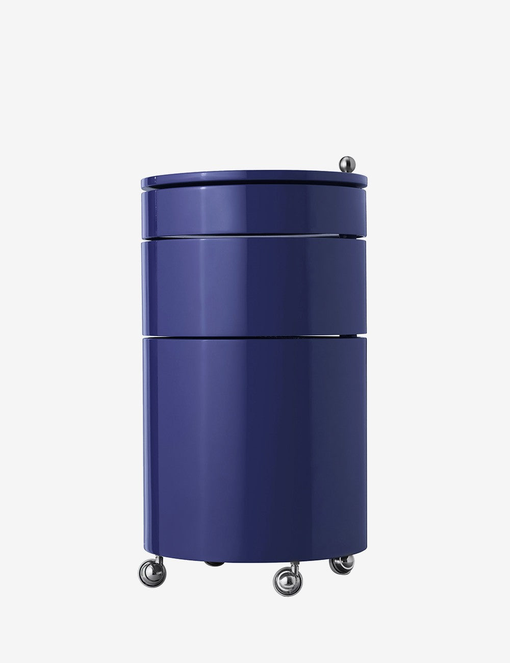 Barboy est à la fois une table d'appoint modulable et un meuble de rangement mobile. Conçue par Verner Panton en 1963 et rééditée par VERPAN, elle est dotée de trois tiroirs circulaires entièrement extensibles, libérant ainsi toute la surface. Le contraste entre la surface brillante et les détails chromés (poignée et roulettes) apporte une touche élégante et distinctive, fidèle au style Panton. Son design fonctionnel et sculptural en fait une pièce polyvalente pour le salon, la chambre, le bureau ou les espaces de réception.