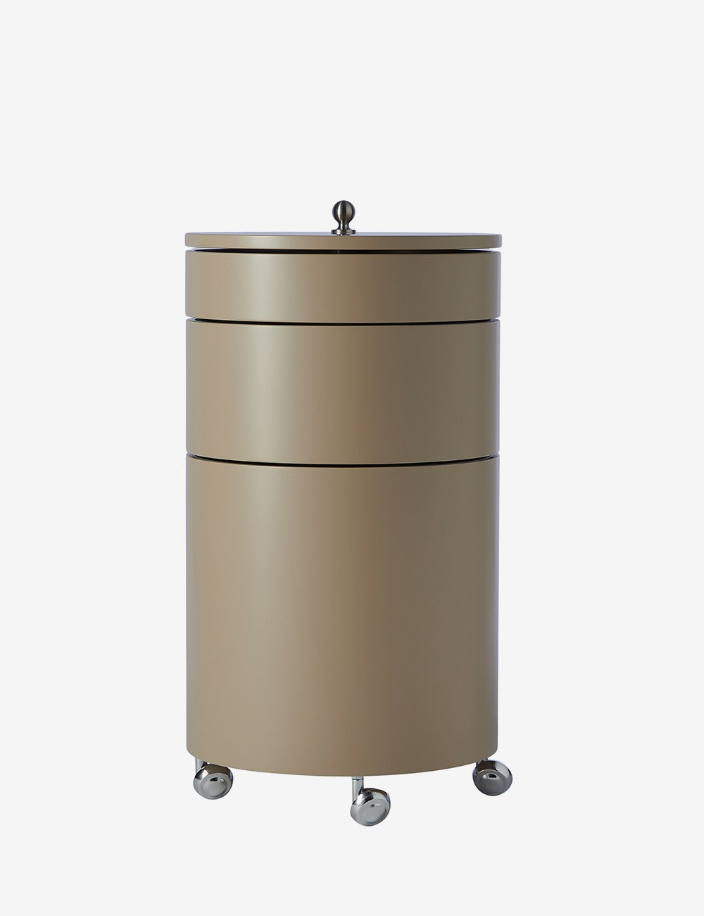 Barboy est à la fois une table d'appoint modulable et un meuble de rangement mobile. Conçue par Verner Panton en 1963 et rééditée par VERPAN, elle est dotée de trois tiroirs circulaires entièrement extensibles, libérant ainsi toute la surface utile. Le contraste entre la surface mate et les détails chromés – poignée et roulettes – apporte une touche élégante et distinctive, fidèle au style Panton. Son design fonctionnel et sculptural en fait une pièce polyvalente pour le salon, la chambre, le bureau ou les espaces de réception.