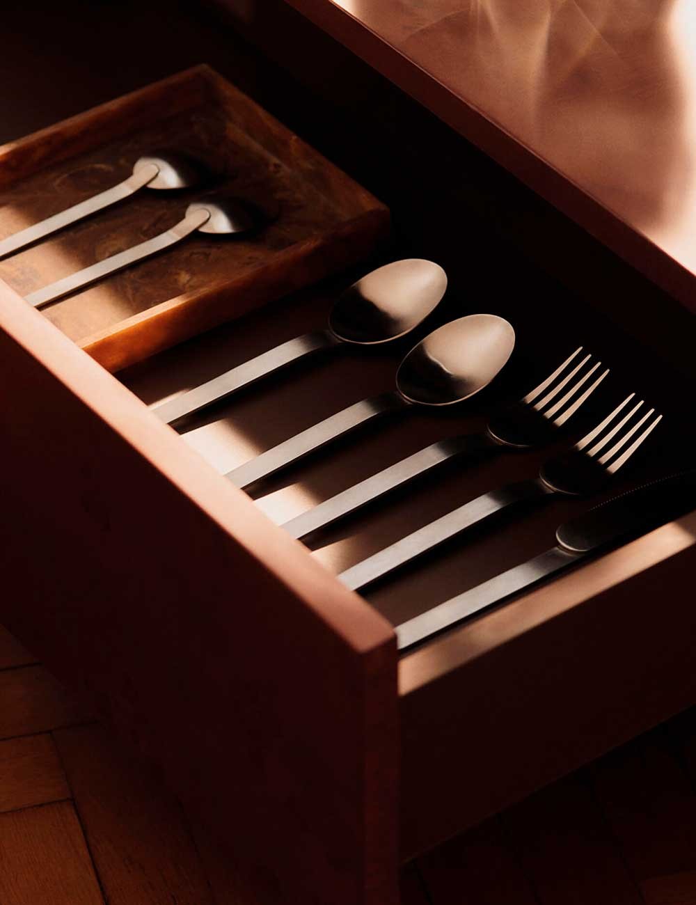 La table basse Burl Storage présente un format carré avec un tiroir de rangement intégré. Fabriquée en bois certifié FSC™ Mix avec un riche placage en loupe, son veinage tourbillonnant ajoute de la profondeur et une chaleur visuelle remarquable. Le tiroir dissimulé offre un rangement discret pour les objets du quotidien et confère au salon sérénité et sobriété. Une pièce fonctionnelle et sophistiquée qui sublime l'ambiance sans compromettre la praticité.