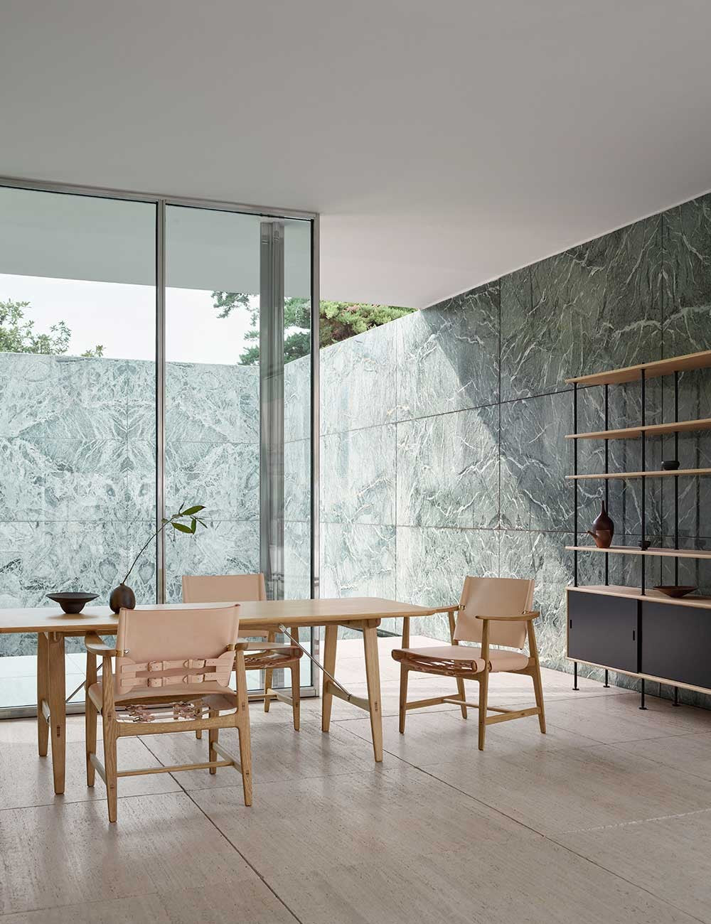 Conçue en 1950 par Børge Mogensen, Carl Hansen & Søn a réintroduit la chaise Huntsman en 2019. Présentée pour la première fois à l'exposition de la Guilde des ébénistes de Copenhague dans le cadre du « thème du pavillon de chasse » de Mogensen, la chaise est accompagnée de la table de chasse assortie.