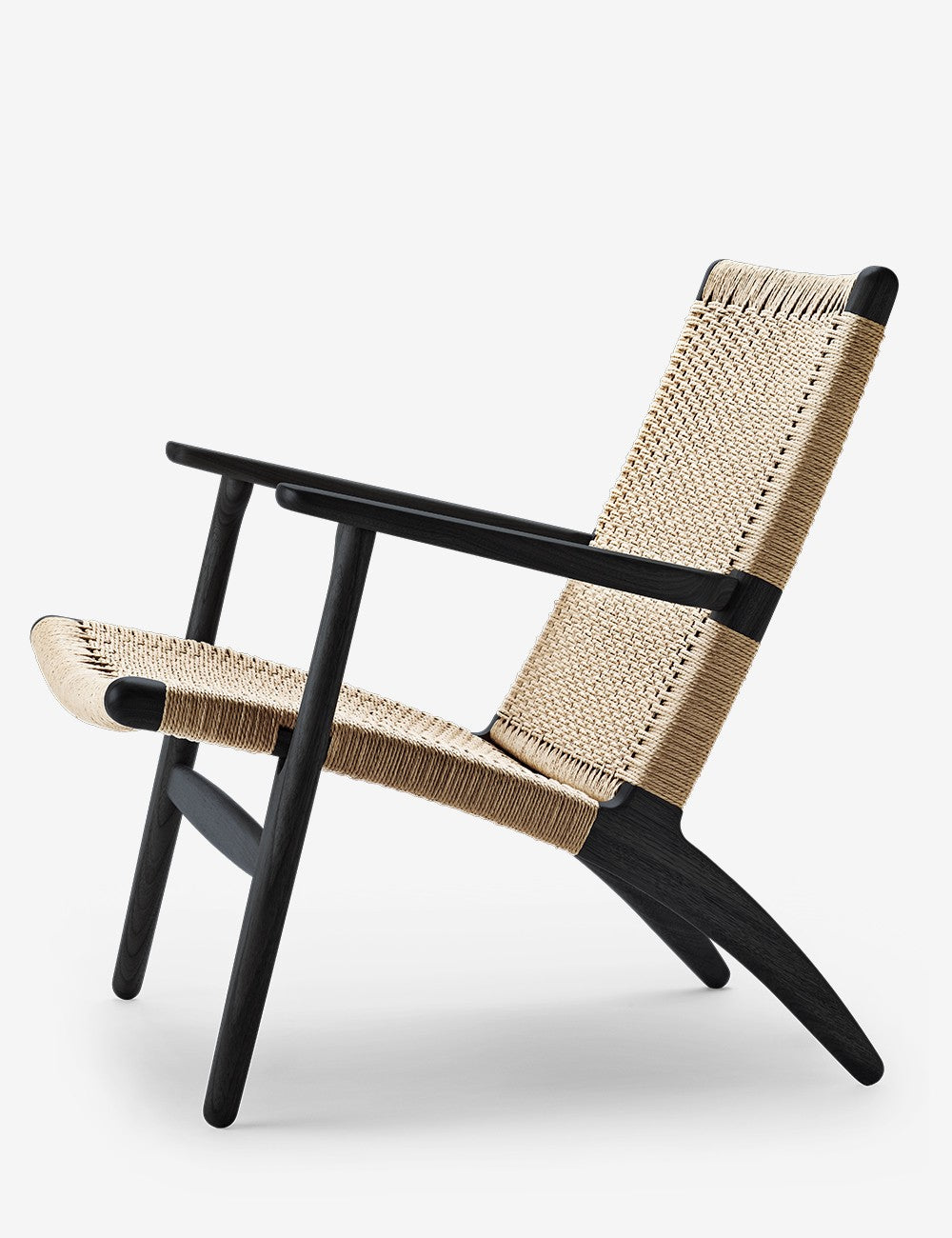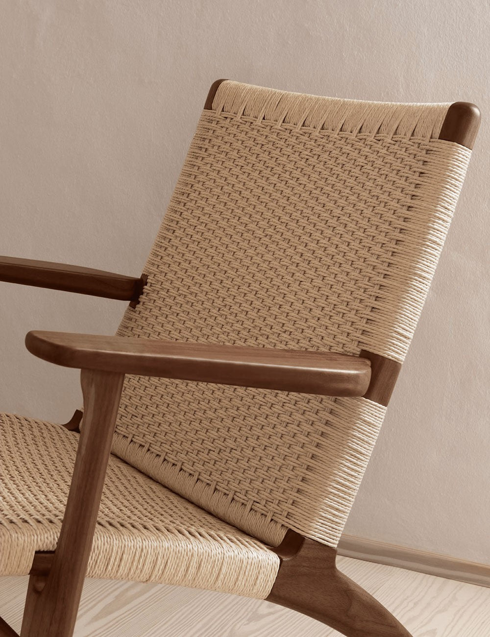Le CH25, comme beaucoup d'autres créations emblématiques de Hans J. Wegner, se distingue par sa forme épurée et simple. Mais son lancement a fait sensation grâce au choix de Wegner pour les matériaux du dossier et de l'assise.