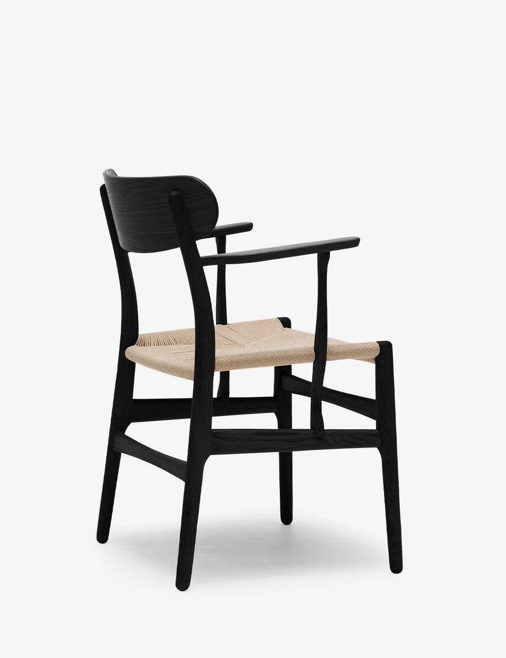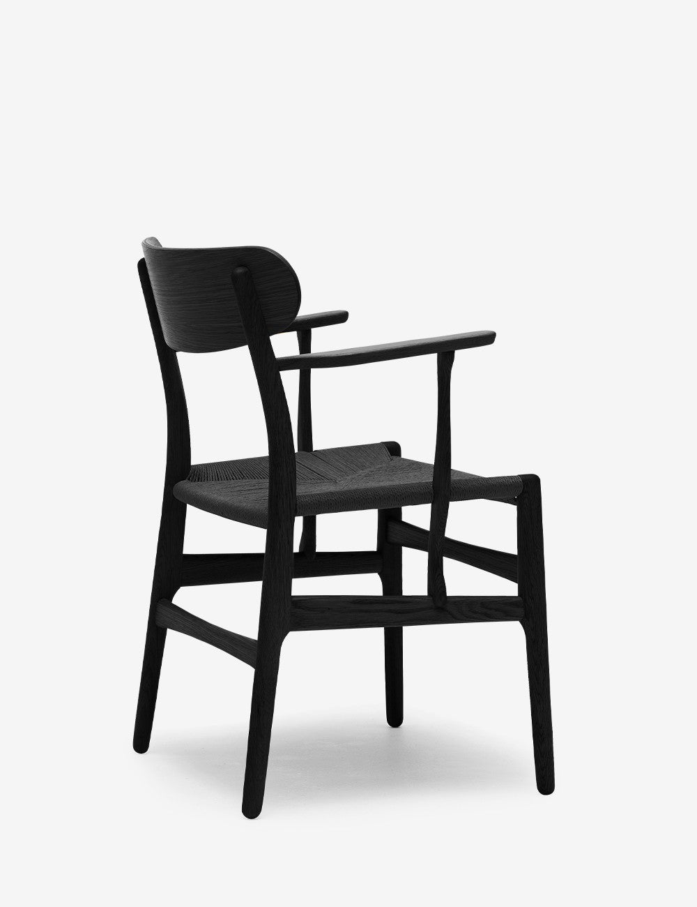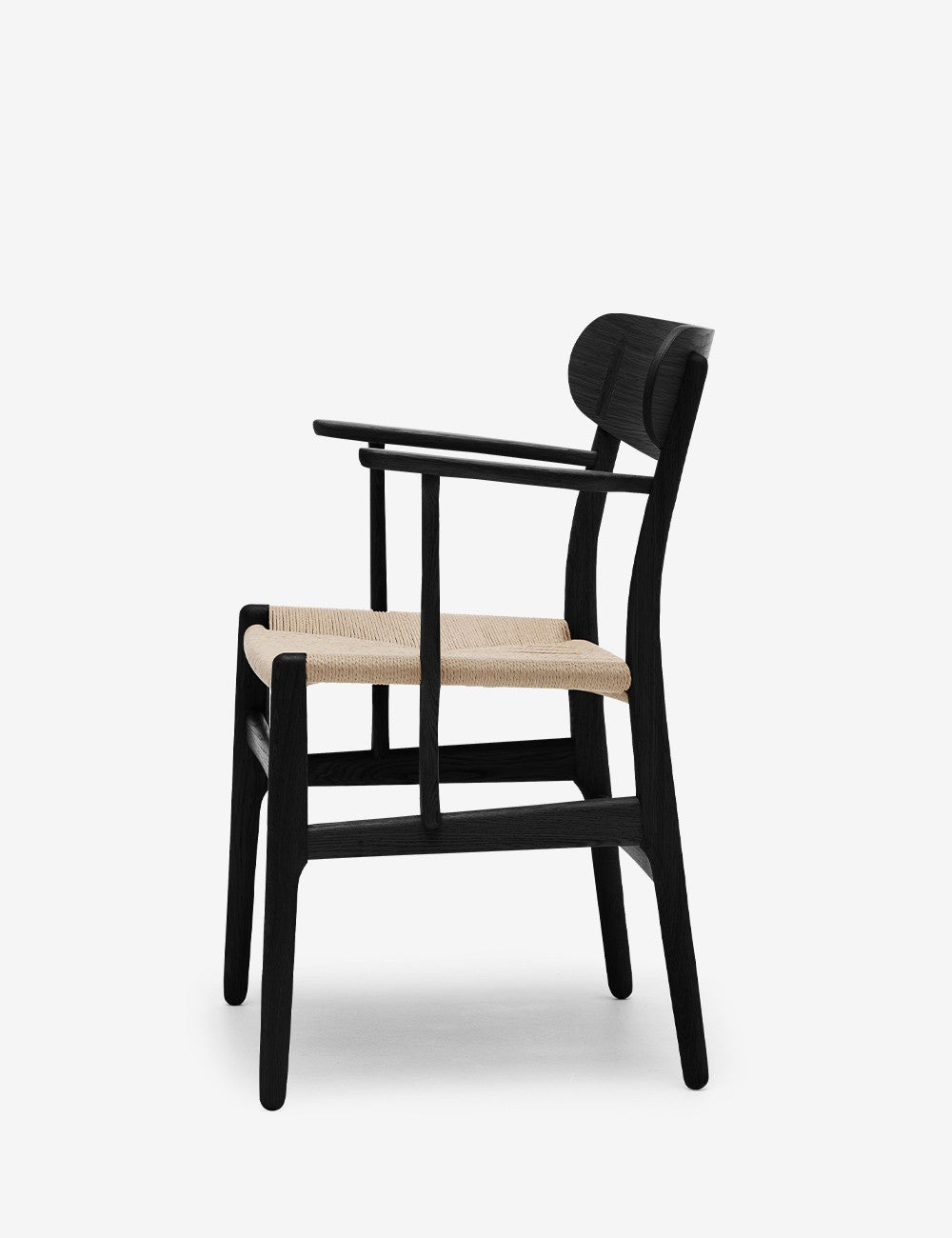CH26 ressemble beaucoup à la version lounge avec ses formes organiques, son dossier raffiné et son siège tissé à la main, et présente des proportions idéales pour de longues périodes assises à une table à manger ou à un bureau.