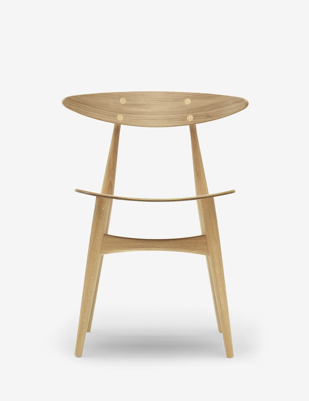 Le design du CH33T est plein de caractère et présente des formes claires et organiques. La hauteur, la profondeur et les angles de cette élégante chaise sont soigneusement adaptés à son utilisateur, et les dimensions du bois sont choisies en fonction des critères jugés nécessaires par Wegner.