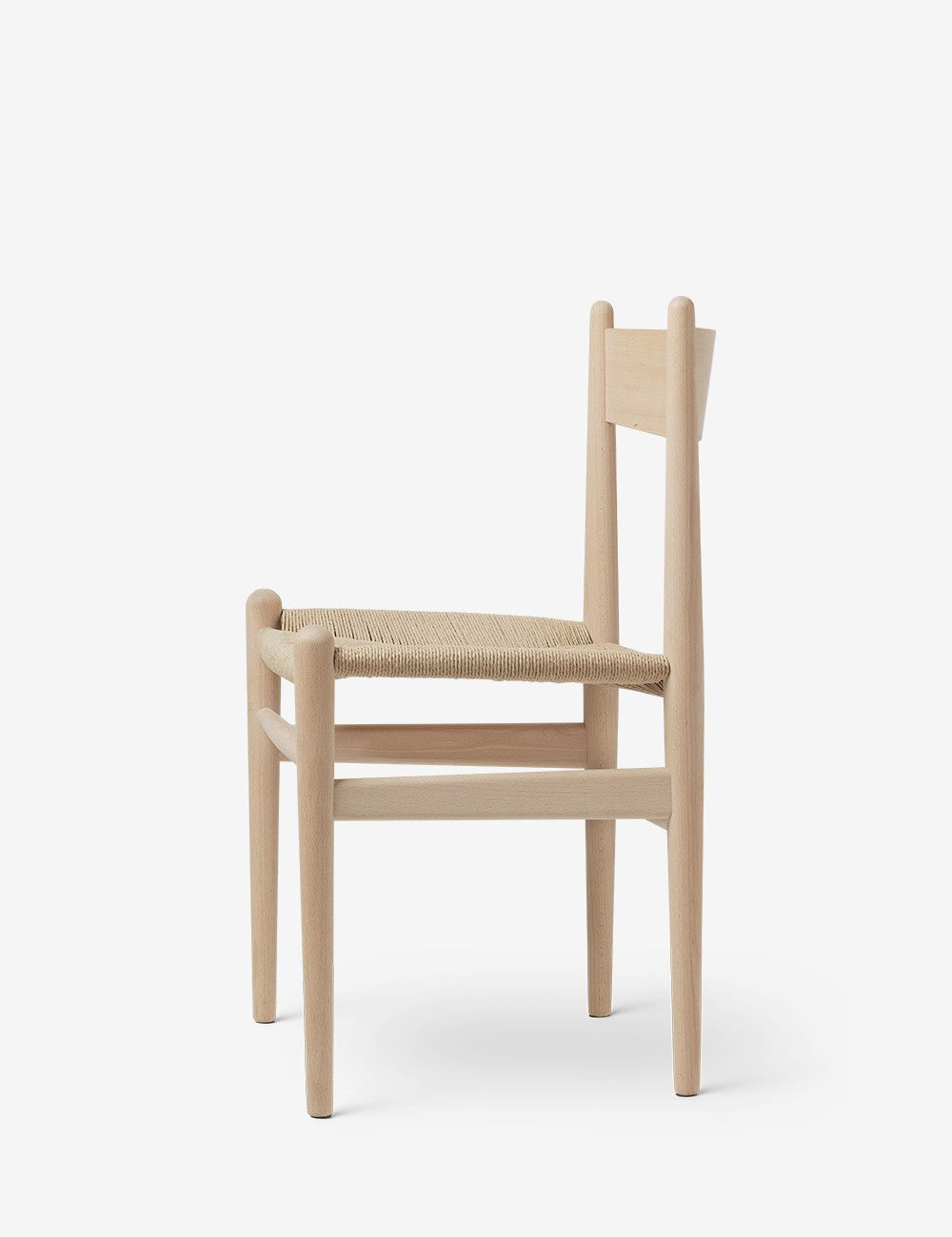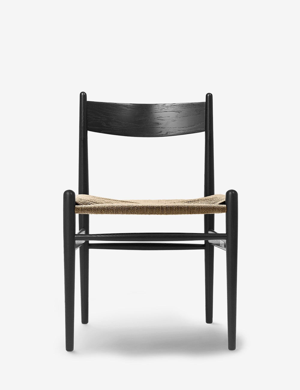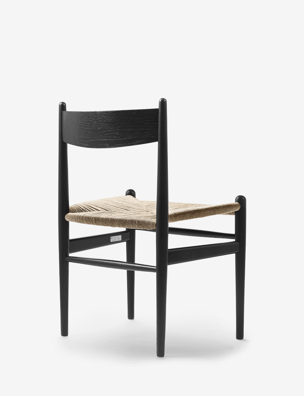 Les pieds du CH36 se rétrécissent légèrement vers le sol, tout comme le dossier, créant ainsi une allure élégante. Le dossier est plus incurvé en haut qu'en bas pour un soutien optimal. L'ensemble est complété par le cadre tissé à la main et l'assise en corde de papier résistante.