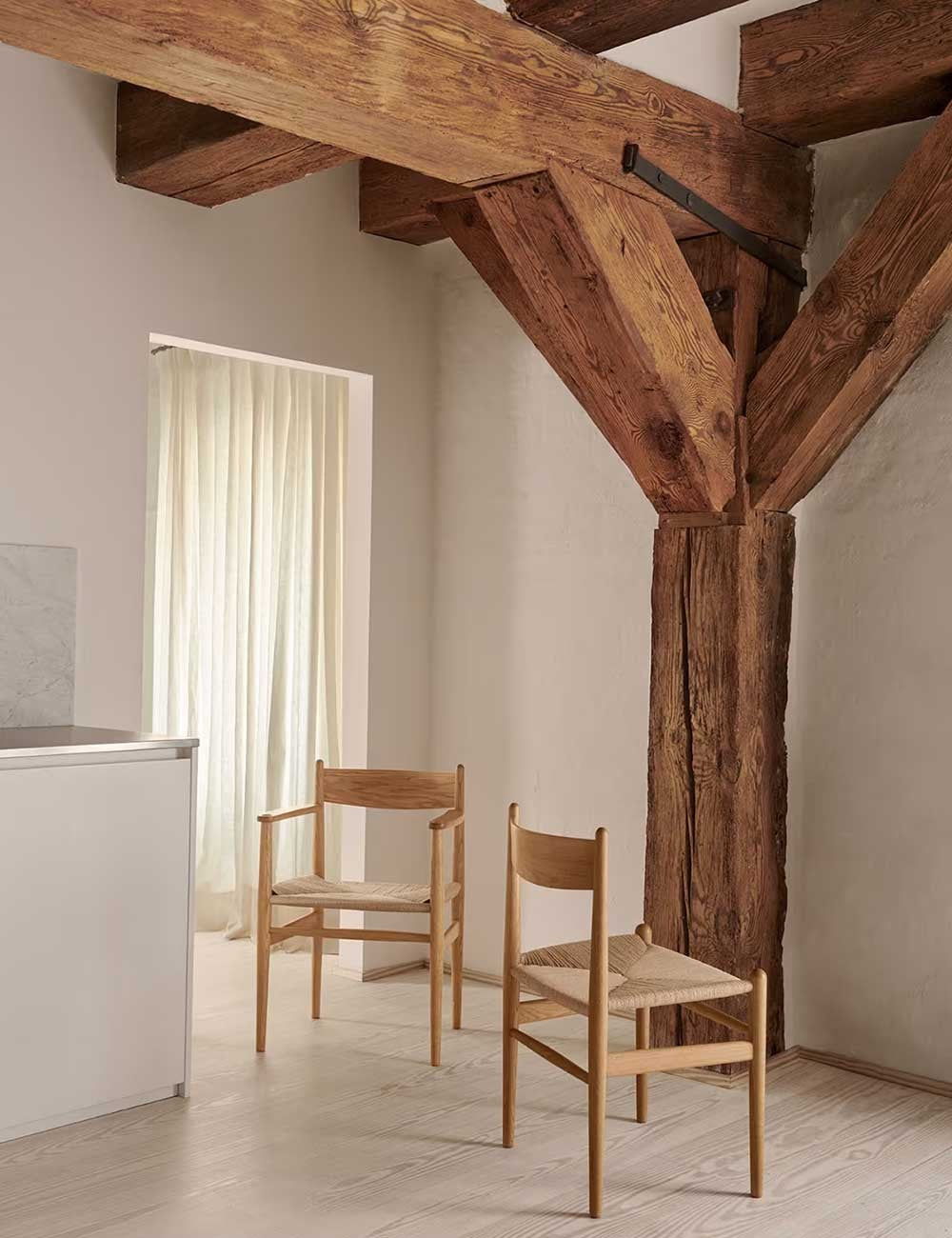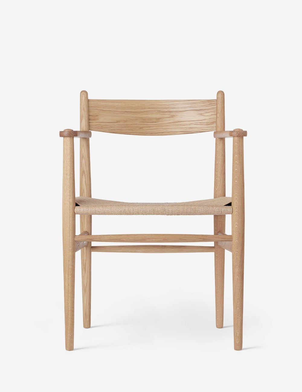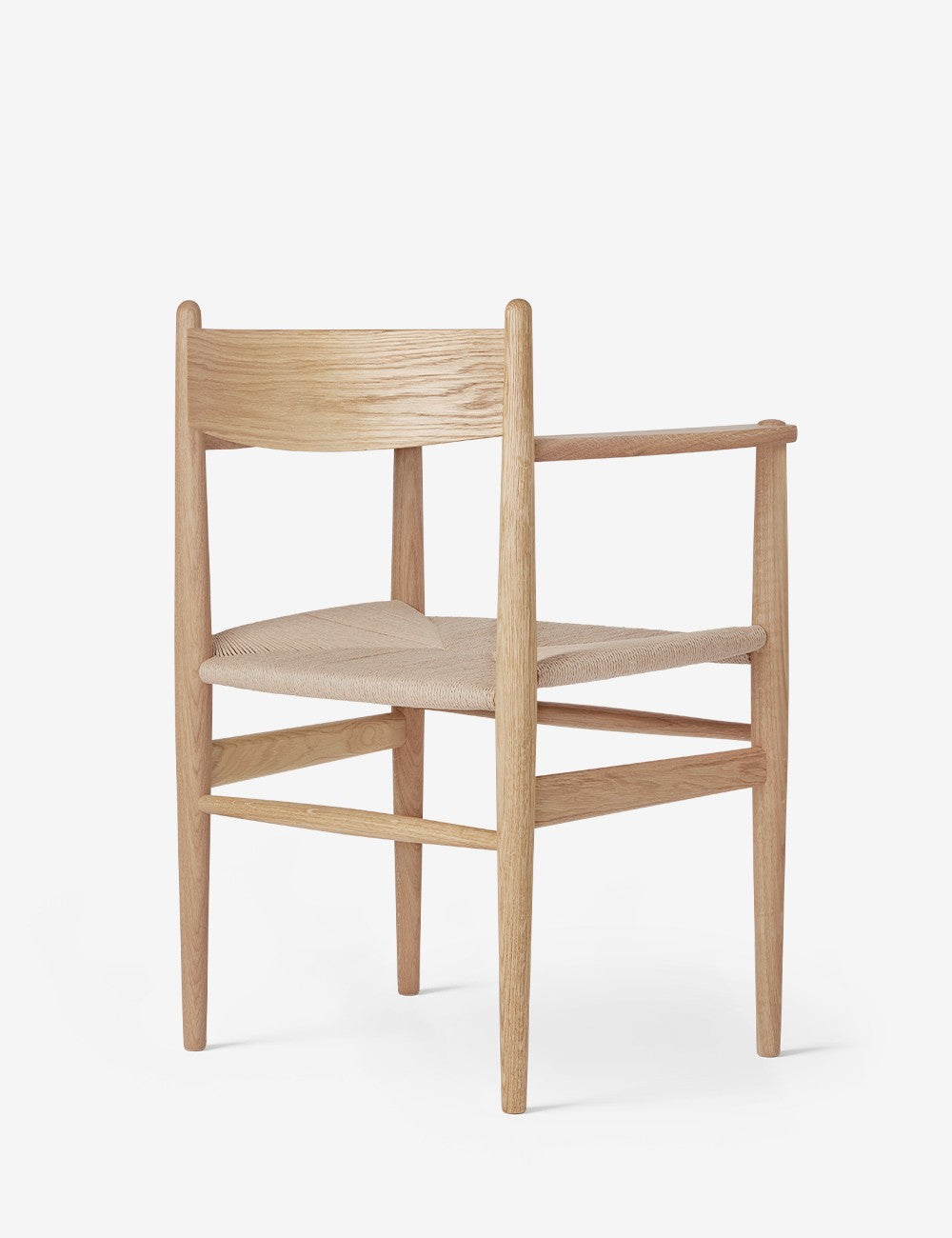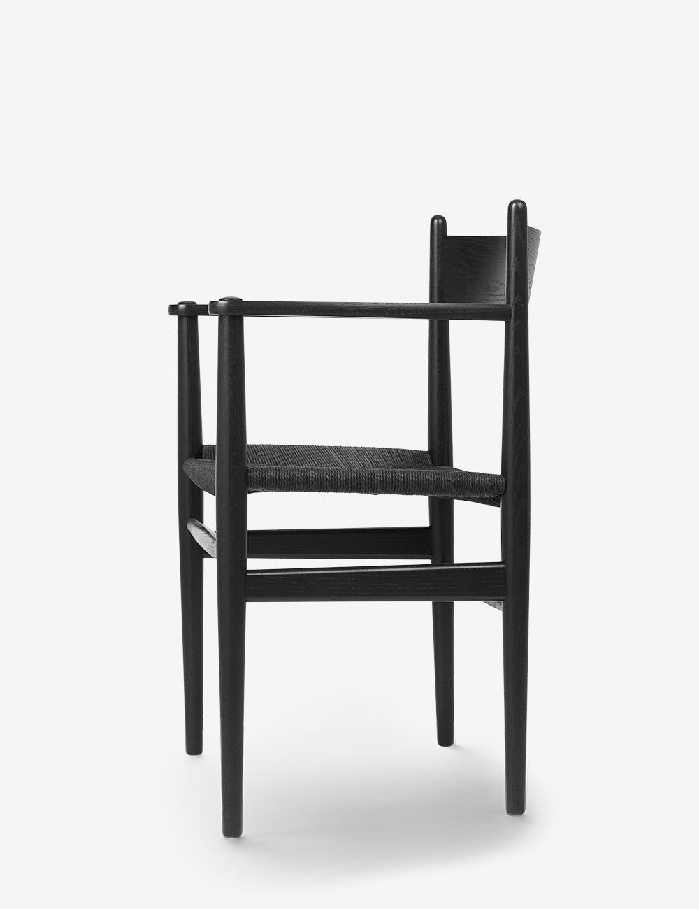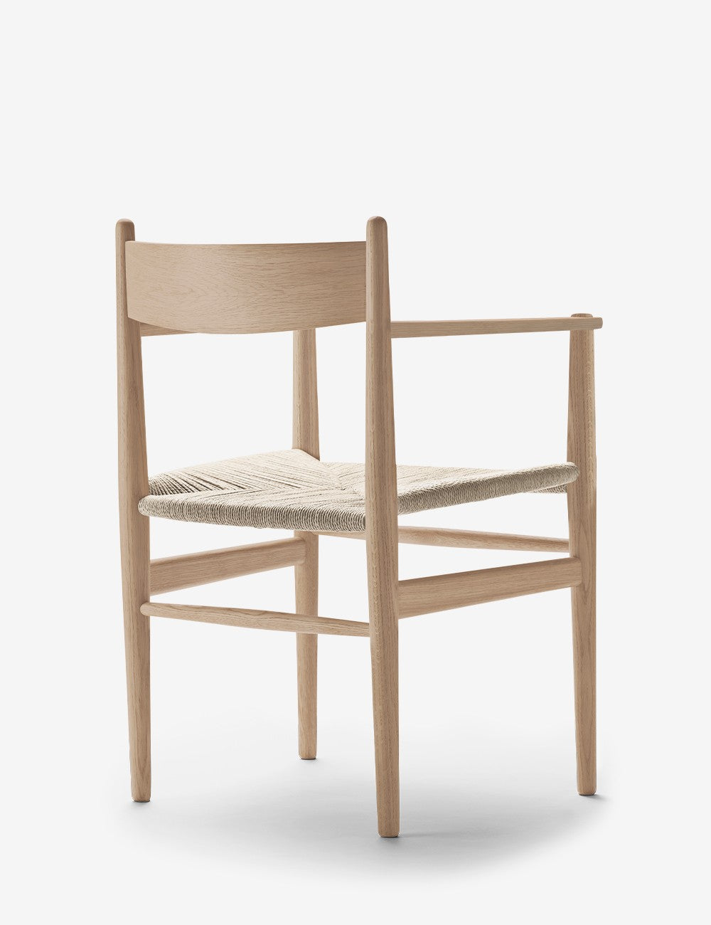 Les pieds du CH37 se rétrécissent légèrement vers le sol, tout comme le dossier, créant ainsi une allure élégante. Le dossier est plus incurvé en haut qu'en bas pour un soutien optimal. L'ensemble est complété par le cadre tissé à la main et l'assise en corde de papier résistante.