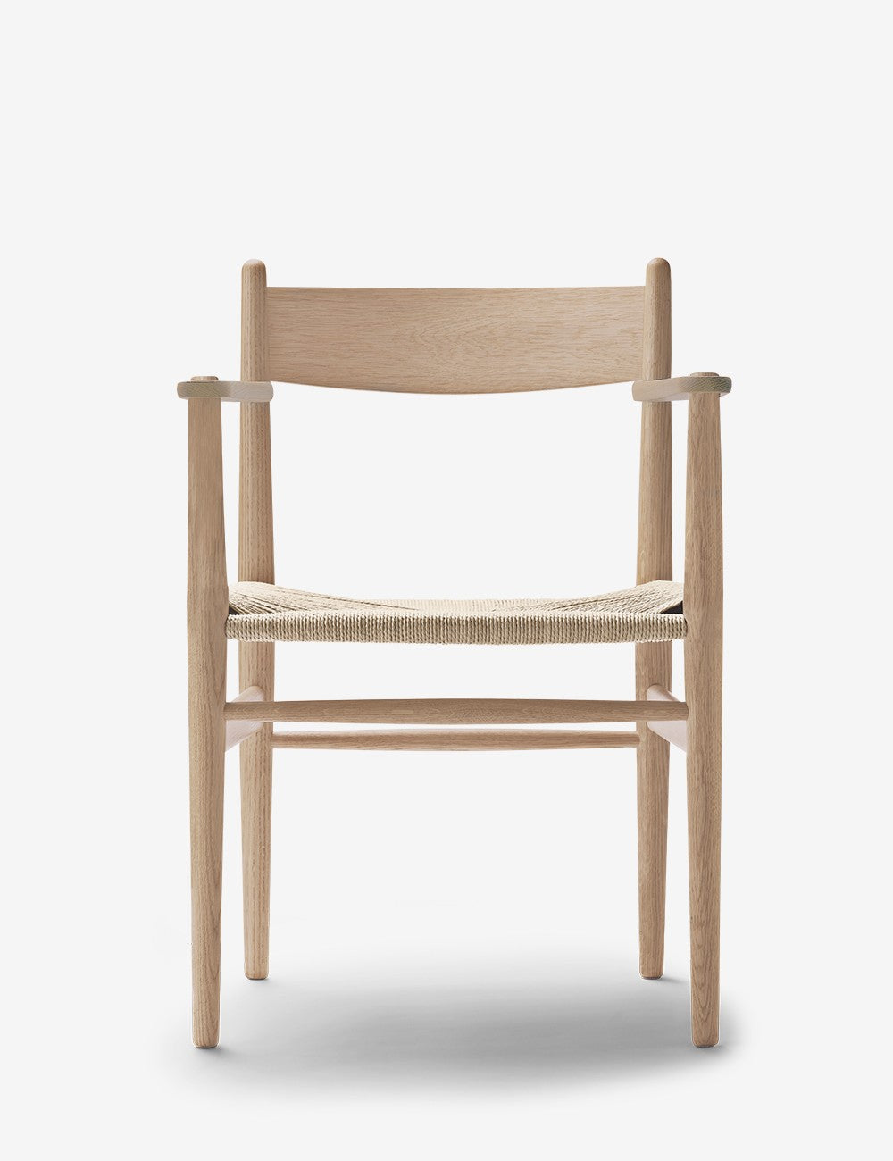 Les pieds du CH37 se rétrécissent légèrement vers le sol, tout comme le dossier, créant ainsi une allure élégante. Le dossier est plus incurvé en haut qu'en bas pour un soutien optimal. L'ensemble est complété par le cadre tissé à la main et l'assise en corde de papier résistante.