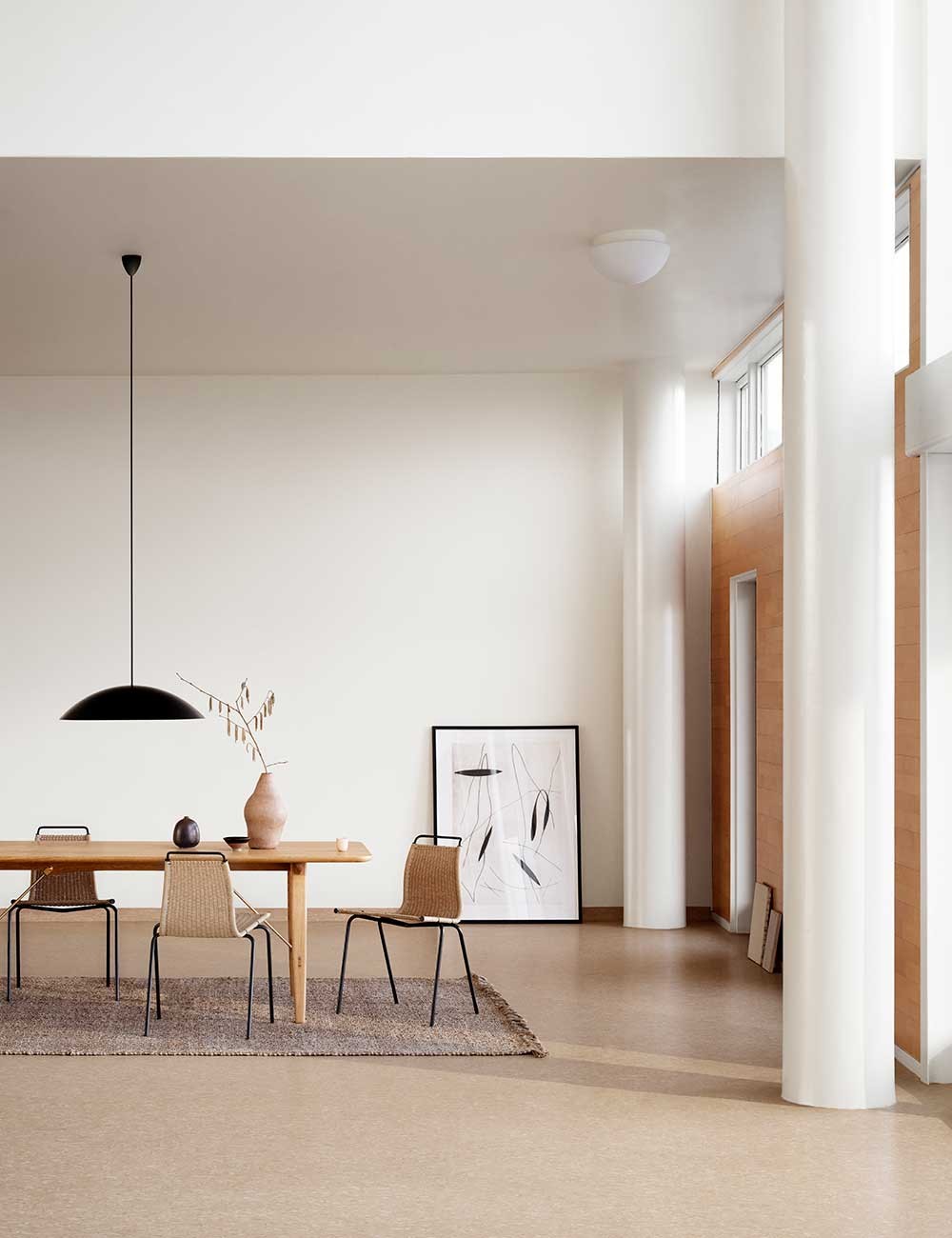 Poul Kjærholm était l'un des architectes phares du modernisme danois. Avec son approche fonctionnaliste du design de mobilier, Kjærholm cultivait la simplicité et la légèreté. De plus, en tant que designer, il excellait dans l'association de son matériau de prédilection, l'acier, avec d'autres matières organiques. Ces deux qualités se reflètent parfaitement dans la chaise de salle à manger PK1.