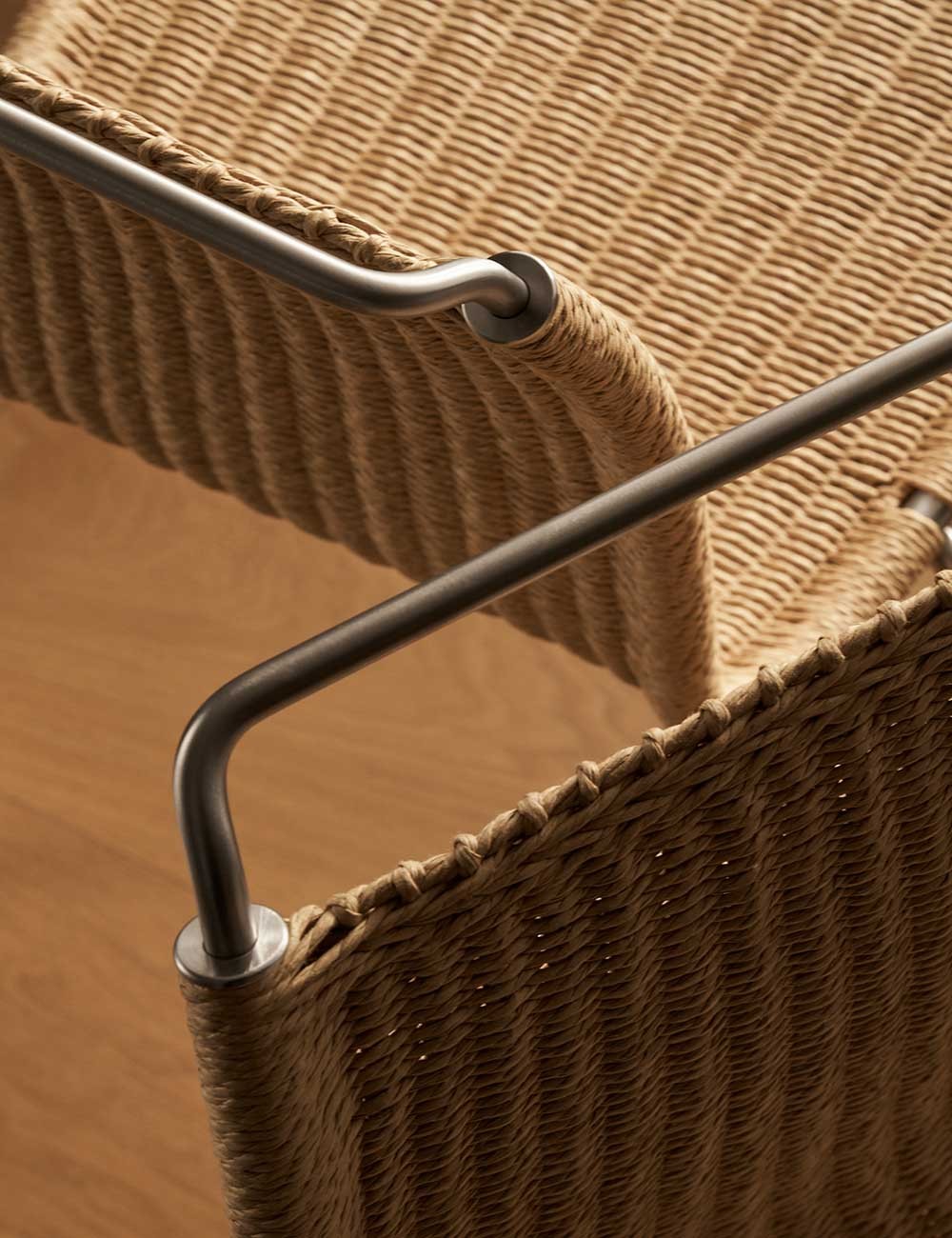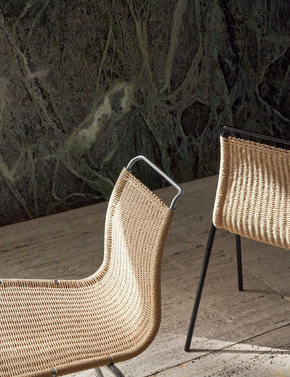 La combinaison de l'acier industriel et du tissage de corde en papier rayonne de légèreté et d'élégance ; PK1 est aujourd'hui considéré comme une icône du design car il équilibre parfaitement l'esthétique, le confort et la stabilité.
