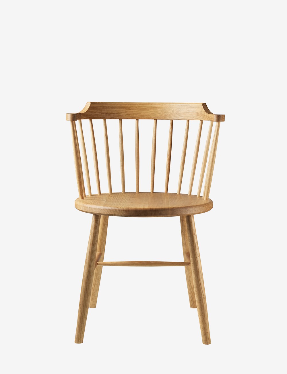 J18 réinterprète la chaise Windsor anglaise classique, donnant naissance à une pièce intemporelle au caractère nordique.