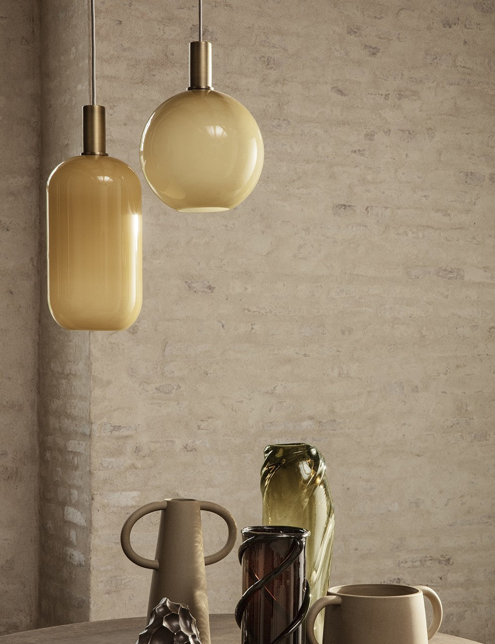 La série Collect de Ferm Living comprend une série de lampes suspendues inspirées de formes rétro issues d'un design conceptuel et intemporel.