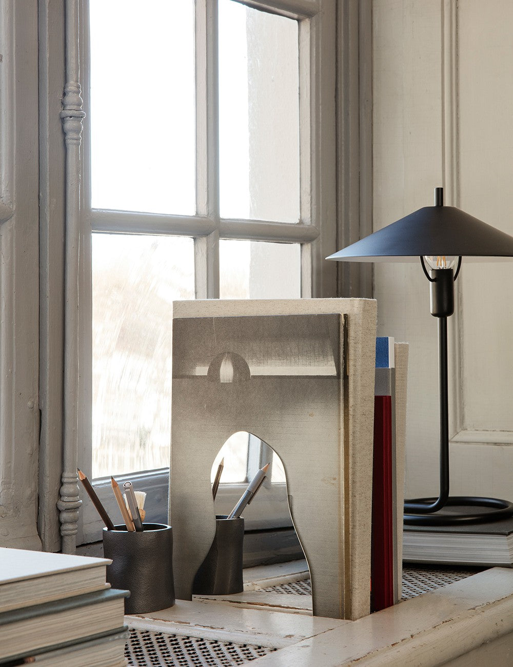 Le design du serre-livres Pond de Ferm Living explore des formes organiques inspirées des mouvements créés par l'eau dans un étang.